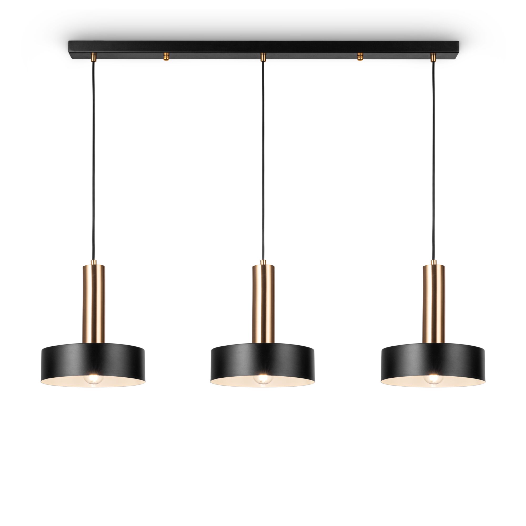 Арматура и плафоны из металла. Цвет арматуры – черный и латунь. Плафоны окрашены в черный оттенок. Актуальный лофтовый дизайн. Источник света – лампа с цоколем E27.
