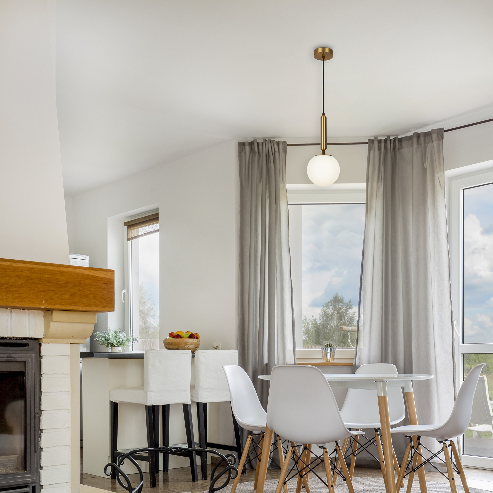 Металлическая арматура оттенка латуни. Плафоны-сферы в двух вариантах: матовое белое стекло и прозрачное с рельефной фактурой. Широкий ассортимент для зональной подсветки. В качестве источника света используется лампа с цоколем Е14.