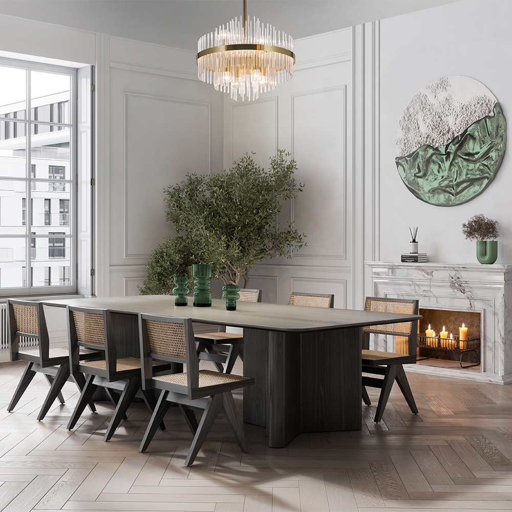 Металлическая арматура, цвет — латунь. Декоративные элементы — прозрачные стеклянные трубки, обрамленные в металлической кольцо в тон арматуре. Источник света — лампа с цоколем Е14.