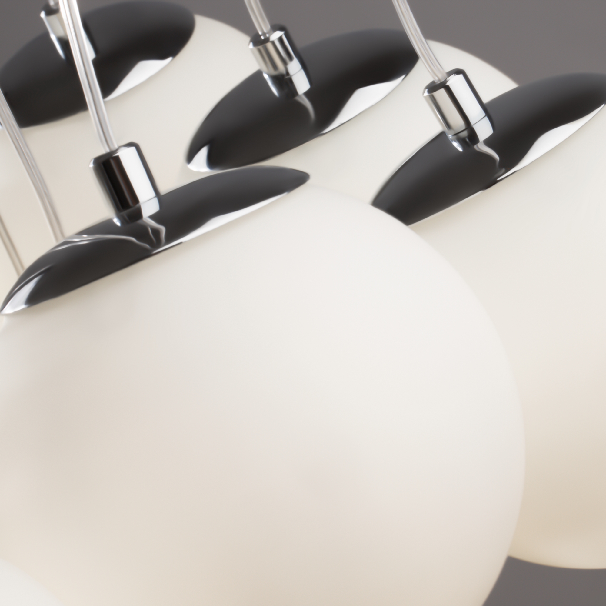 Материал арматуры — металл, цвет — хром/латунь. Подвесные светильники c цоколями E14/E27/G9. Белые стеклянные плафоны с рисунком в виде космических планет крепятся на тонких тросах, которые регулируются по высоте, создавая эффект парящих облаков.