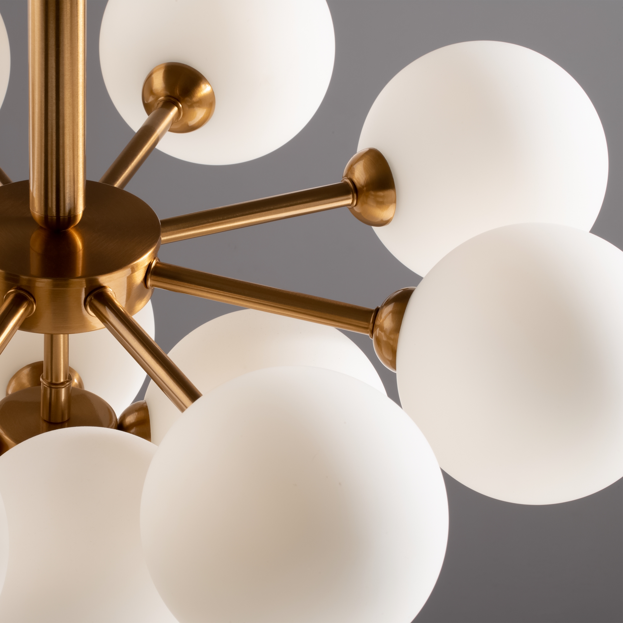 Арматура — металл, цвет — латунь. Стеклянные плафоны-сферы в двух оттенках белый матовый и дымчатый в настенно потолочной версии. Округлые и плавные линии — беспроигрышное сочетание для современных интерьеров. Настенные бра можно использовать как для общего на потолке так и для зонального настенного освещения Источник света — лампа с цоколем G9.