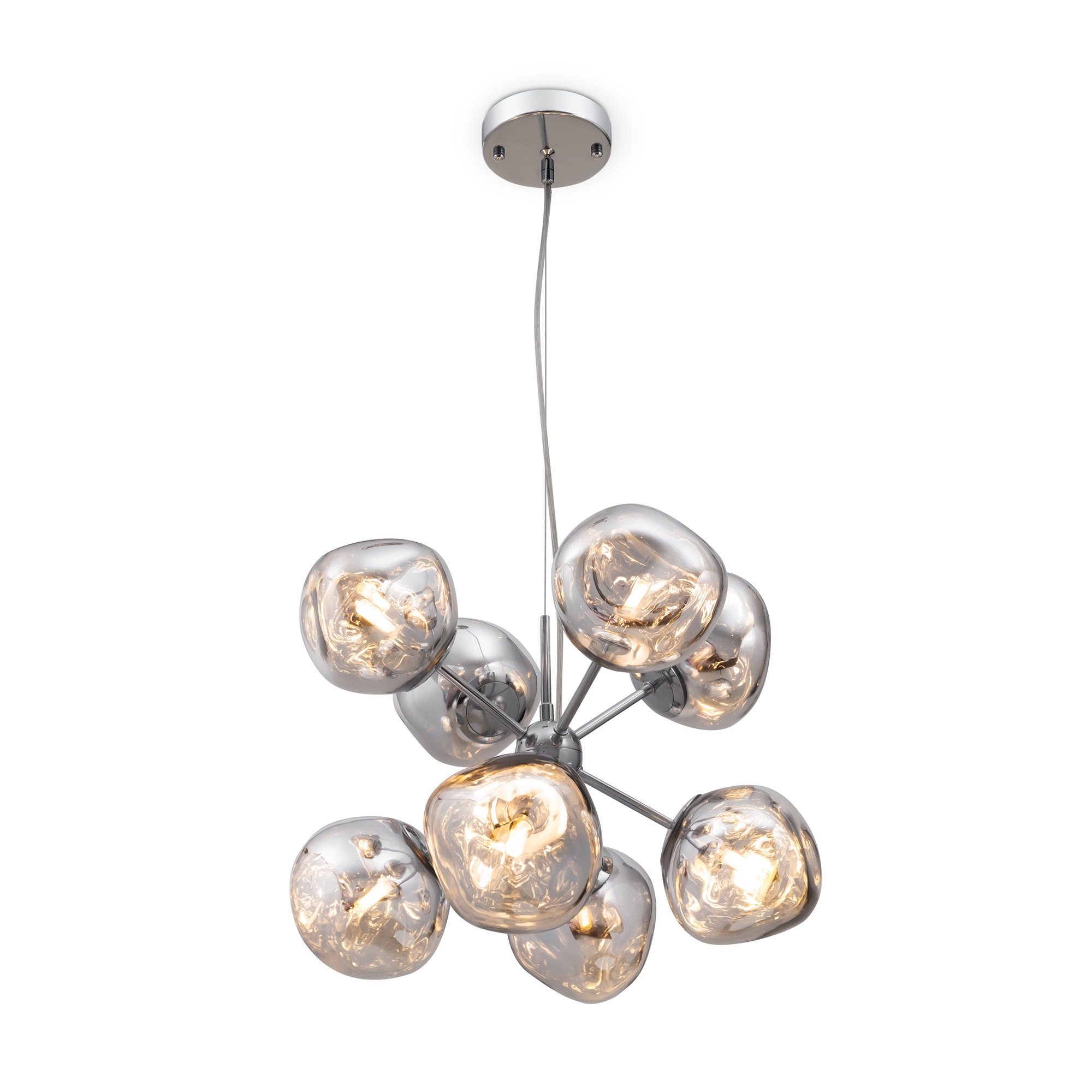 Арматура — металл, цвет — хром. Шарообразные плафоны с зеркальным эффектом и переливами. Материал — стекло с серебристым напылением. Источник света — лампа с цоколем — E27.