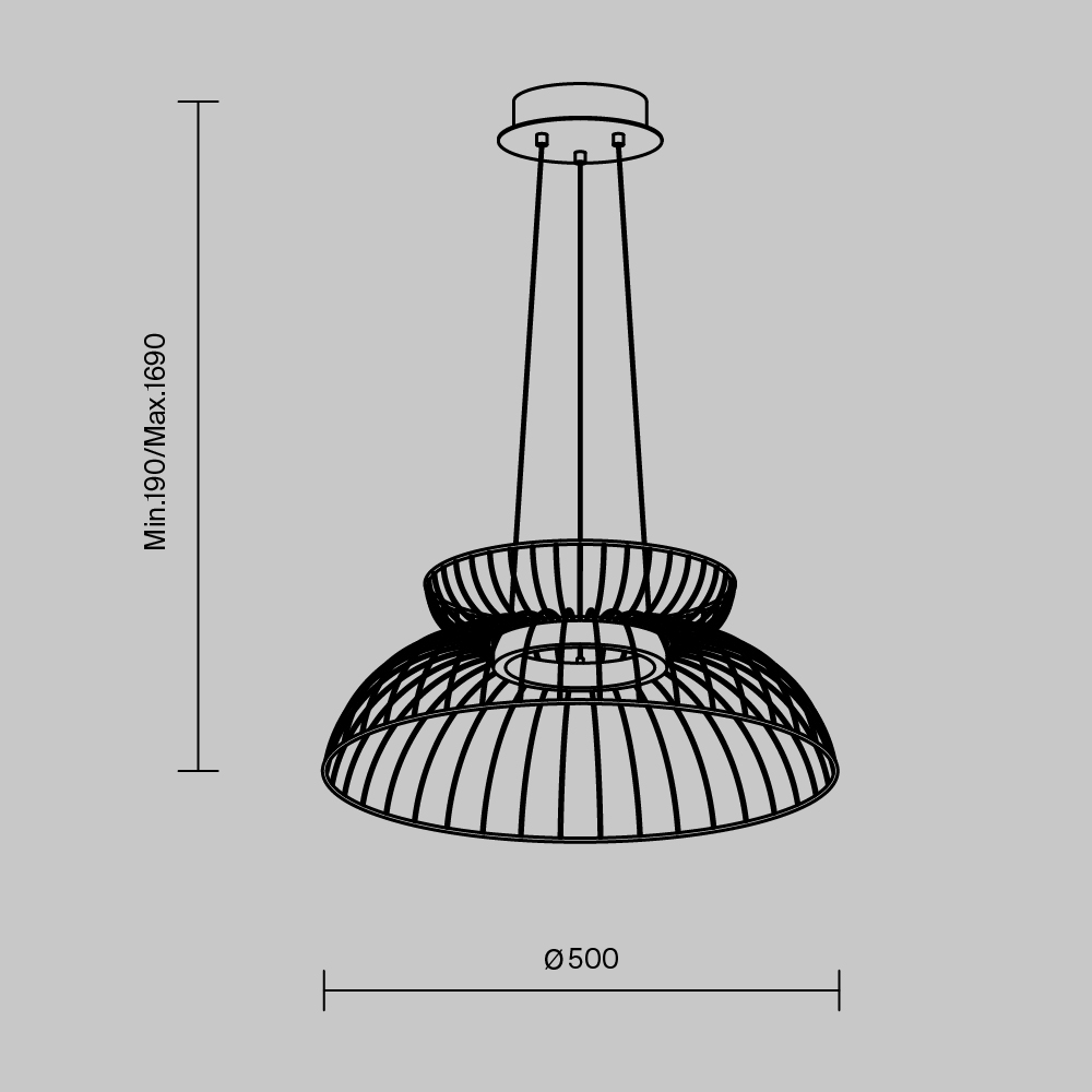 Металлическая арматура чёрного цвета. LED-источник света обрамлен декоративным металлическим кольцом цвета латунь. Минималистичный дизайн — хорошо сочетается с другими осветительными приборами. Высота подвеса регулируется. Цветовая температура — 3000К.