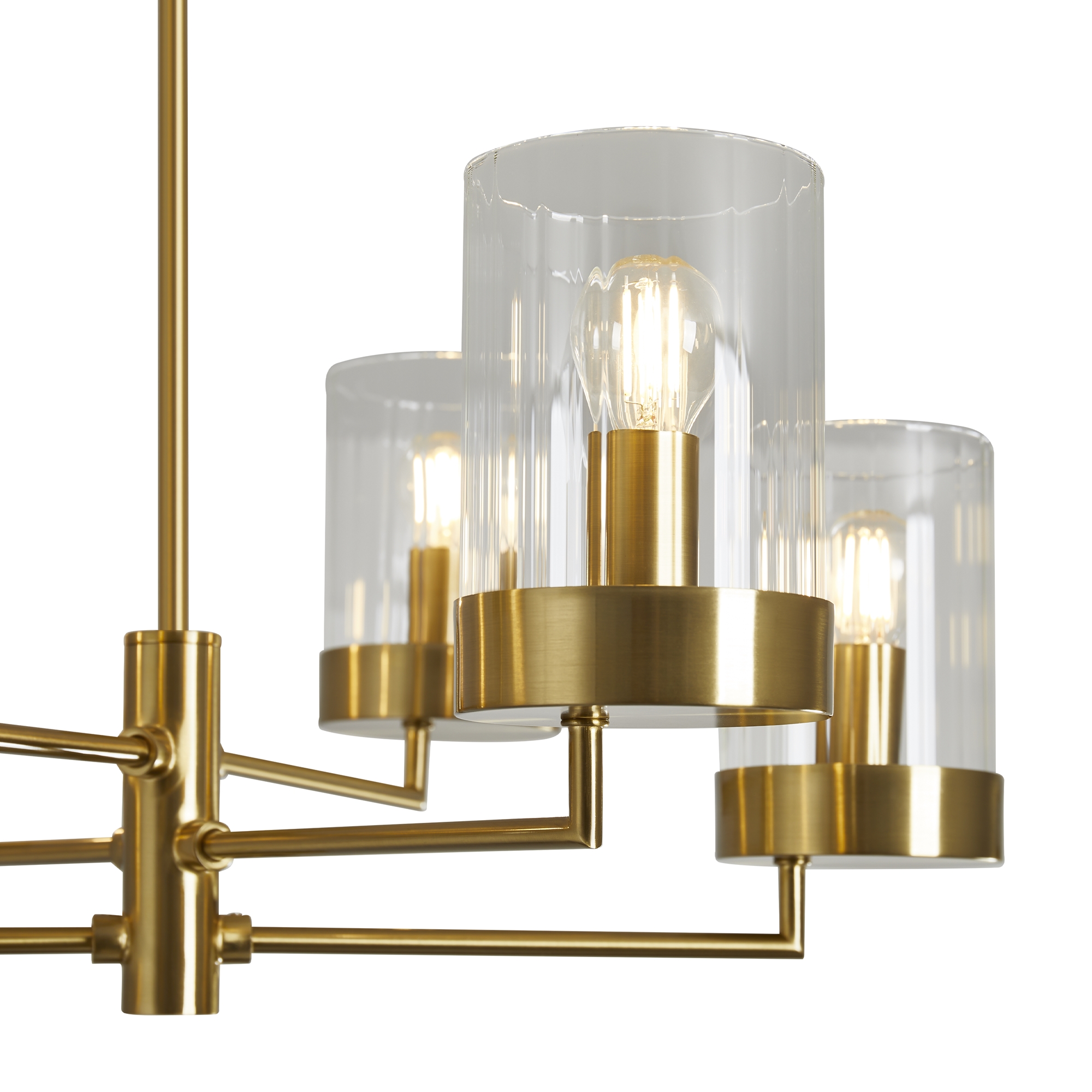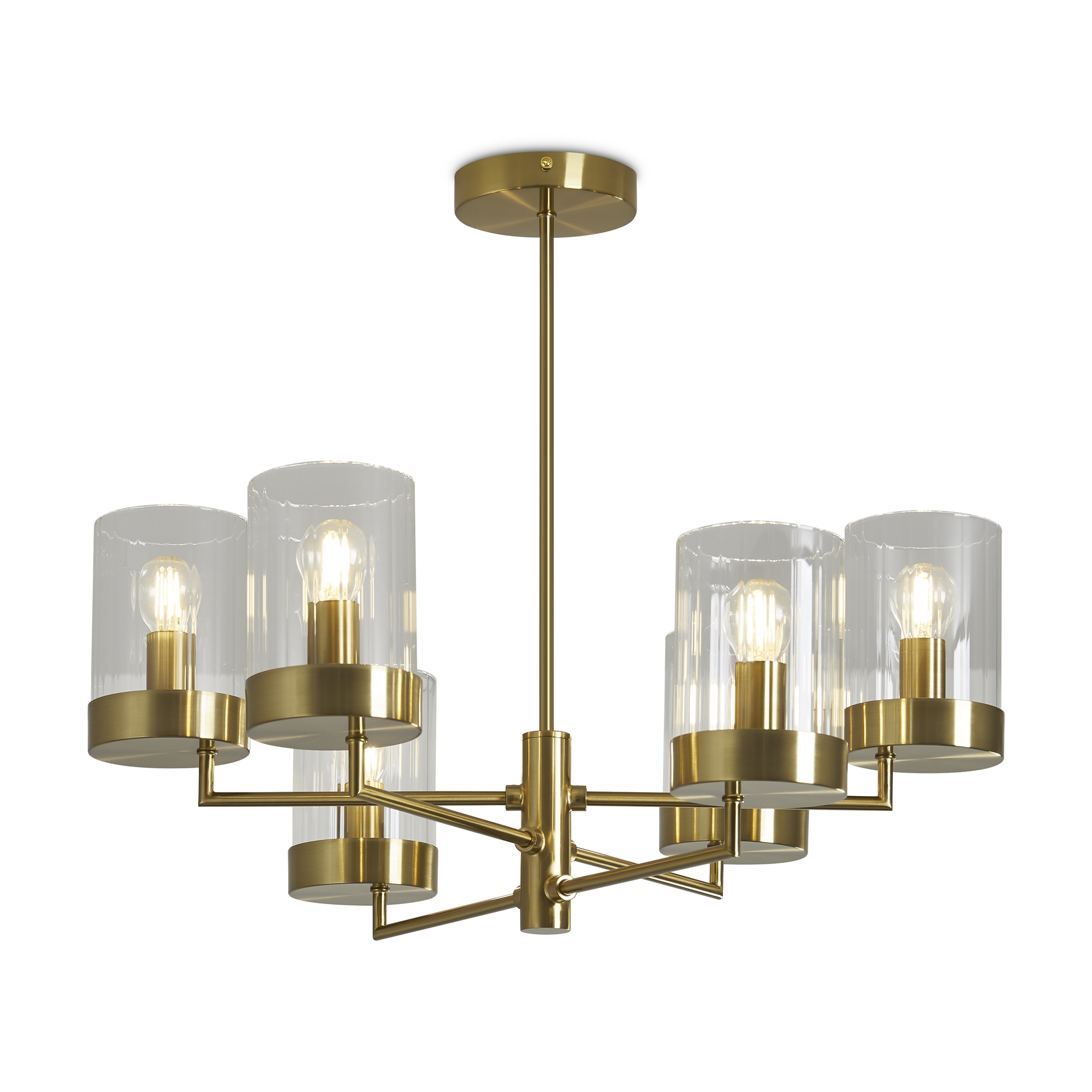 Арматура металл. Цвет арматуры латунь. Плафоны из рельефного стекла в форме цилиндра направлены вверх. Потолочные светильники подойдут для помещений с низкими потолками. Источник света лампа. Цоколь E14.
