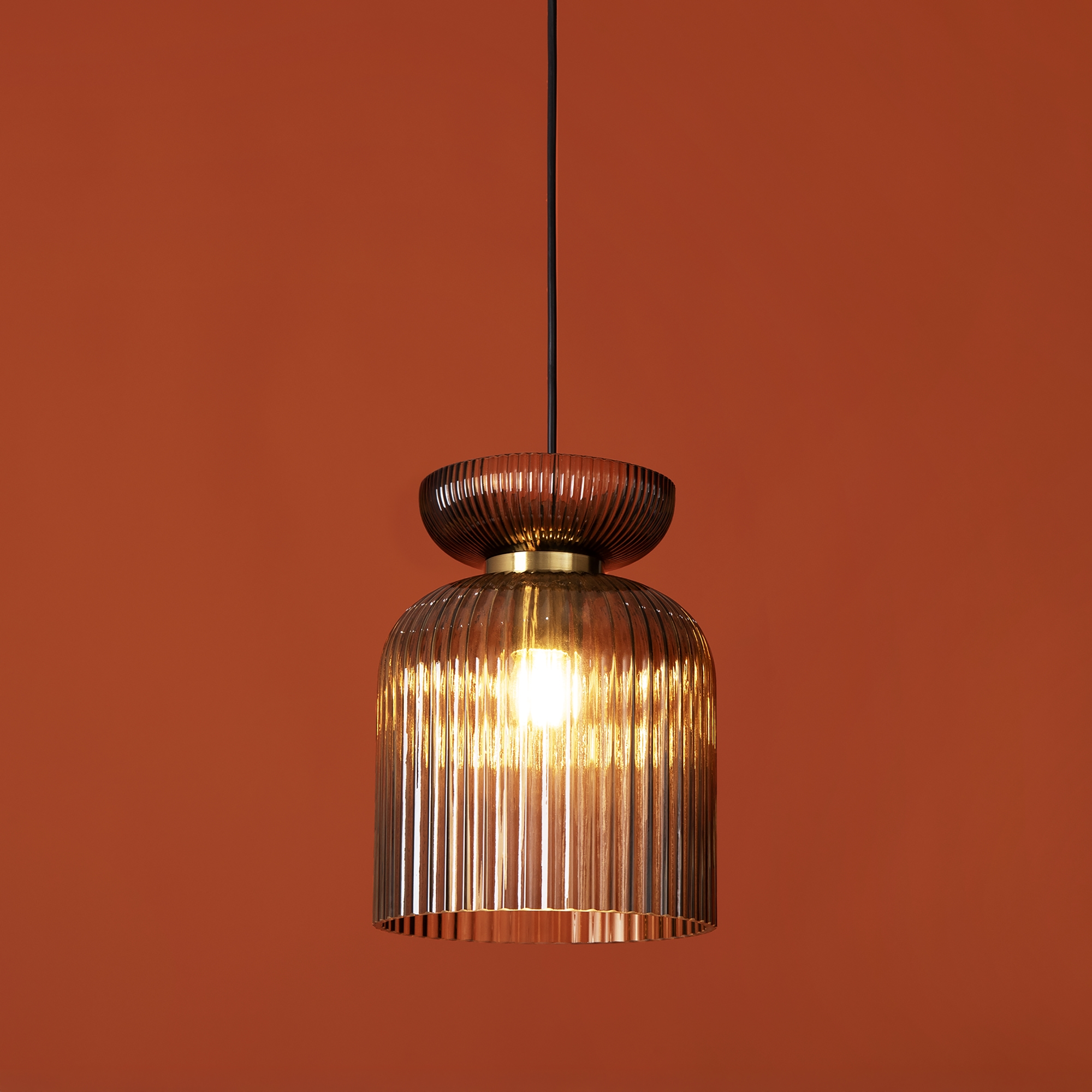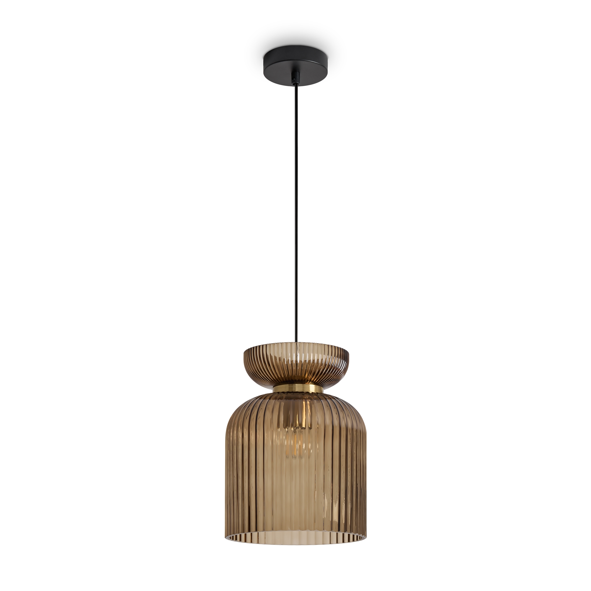 Материал арматуры — металл, цвет — черный. Подвесной светильникс цоколем E27. Рельефный стеклянный плафон восточной формы, с рельефным стеклом в двух цветах:коричневый и дымчатый. Подходит для интерьеров в неоклассическом стиле и пространств в стиле лофт.
