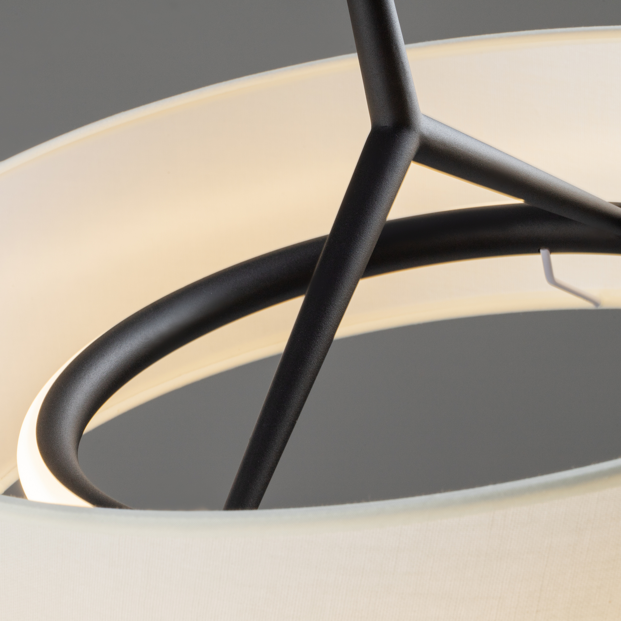 Арматура — металл. Цвет — черный. LED-источник света округлой формы спрятанный под тонкой юбкой абажура из ткани теплого белого оттенка. Серия создана на основе популярной серии Vabi. Цветовая температура 3000К.