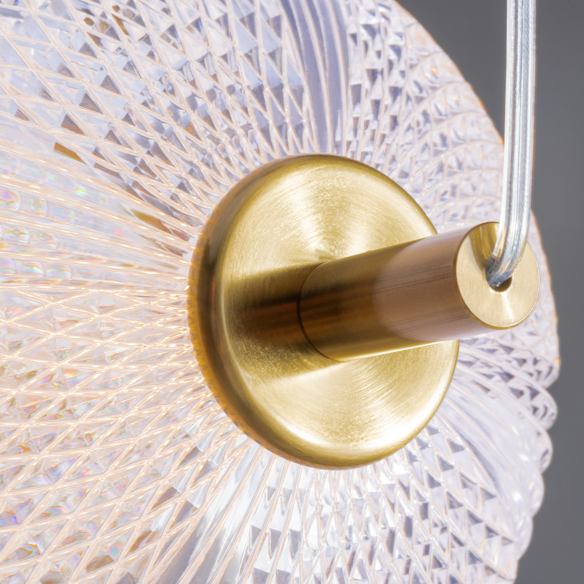Арматура выполнена из металла в цвете латунь. Прозрачные плафоны. Вертикальные и горизонтальные подвесные светильники разных размеров. LED источник света. Цветовая температура 3000К.