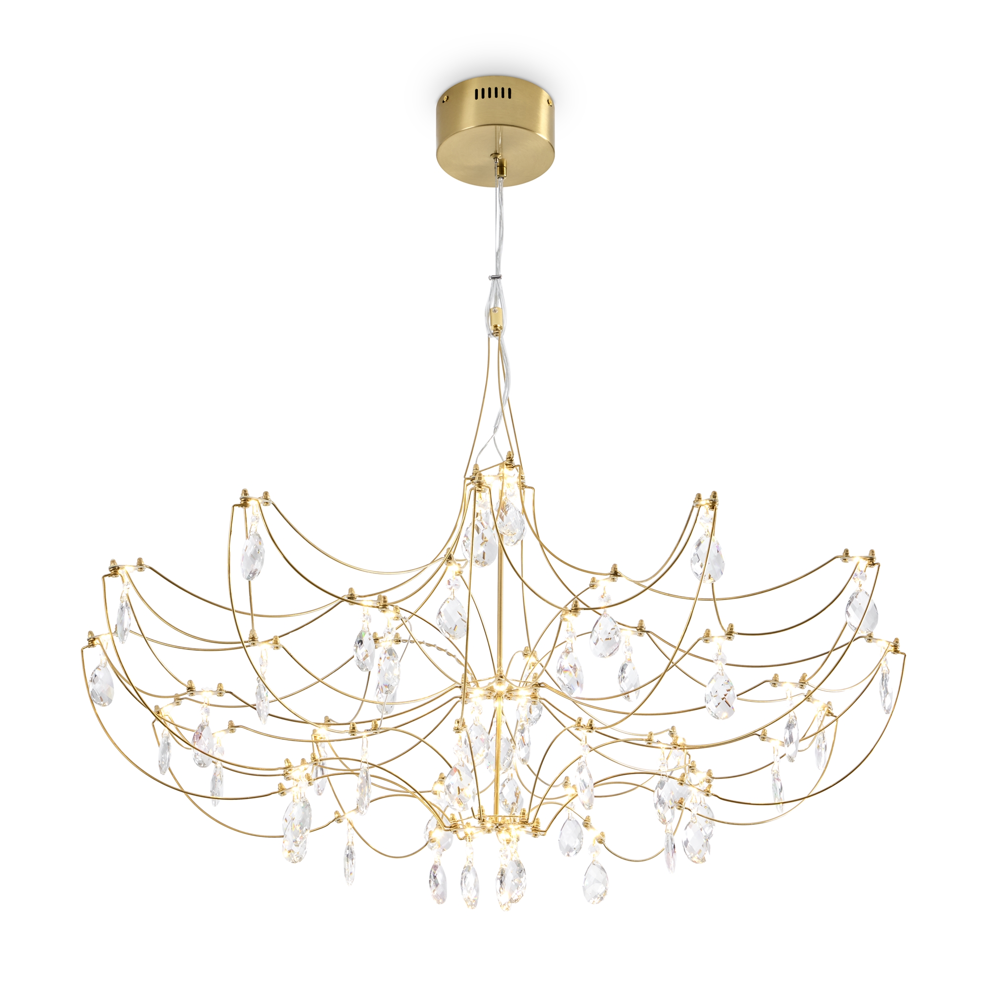 Арматура — хромированная нержавеющая сталь. В соединениях арматуры Led источник света и декоративные элементы из хрусталя в виде капелек. Цветовая температура 3000К.