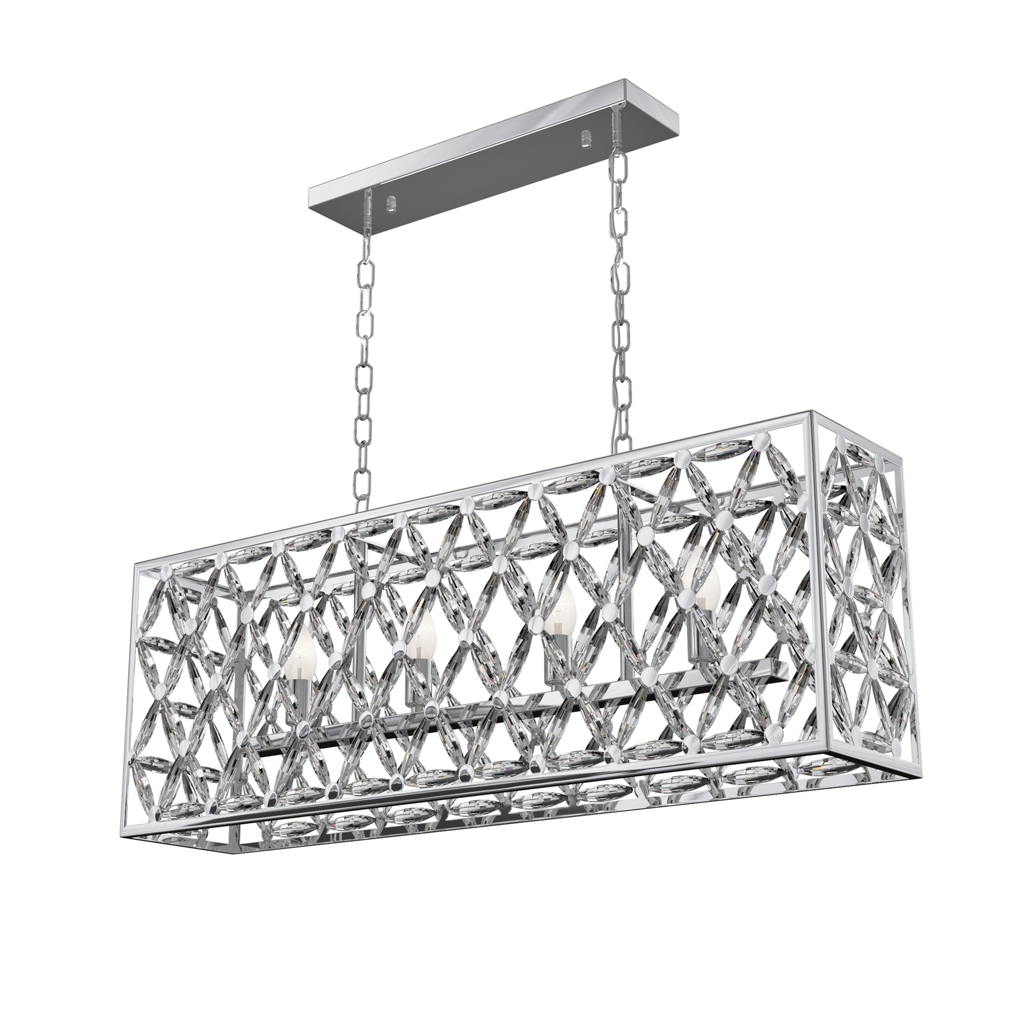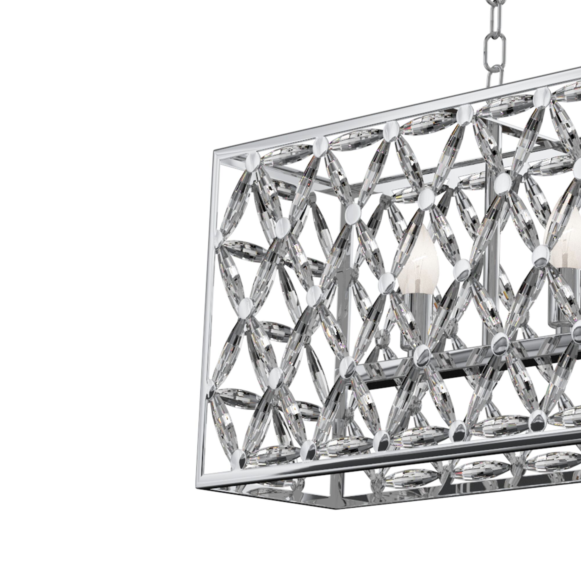 Светильники серии образованы множеством граненых кристаллов, соединенных между собой и закрепленных на раме из полированного металла. Являясь олицетворением престижа, элегантности и оригинального стиля исполнения, они будут жемчужиной освещаемого интерьера. Высоту подвесных светильников возможно изменить, регулируя длину цепи.