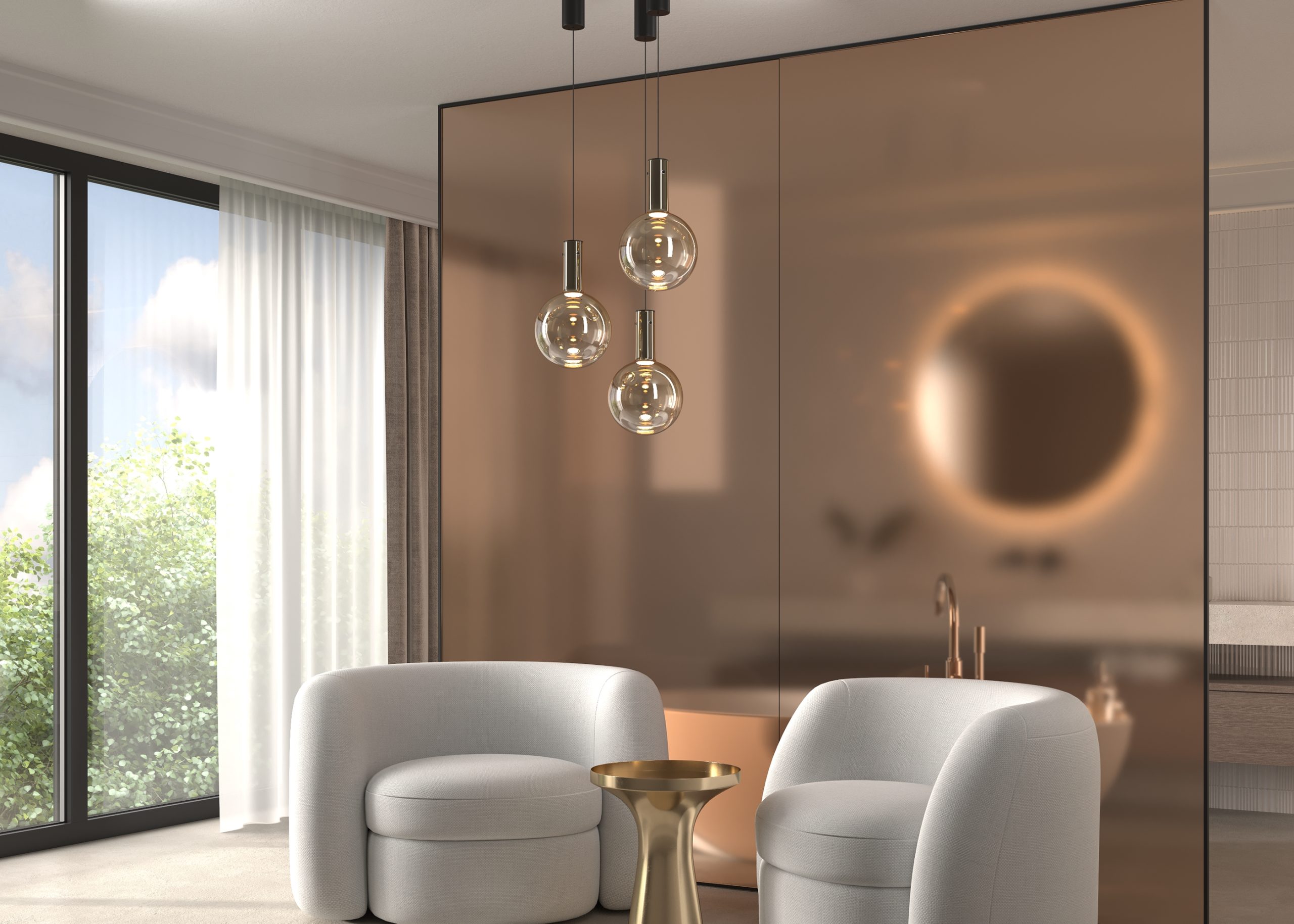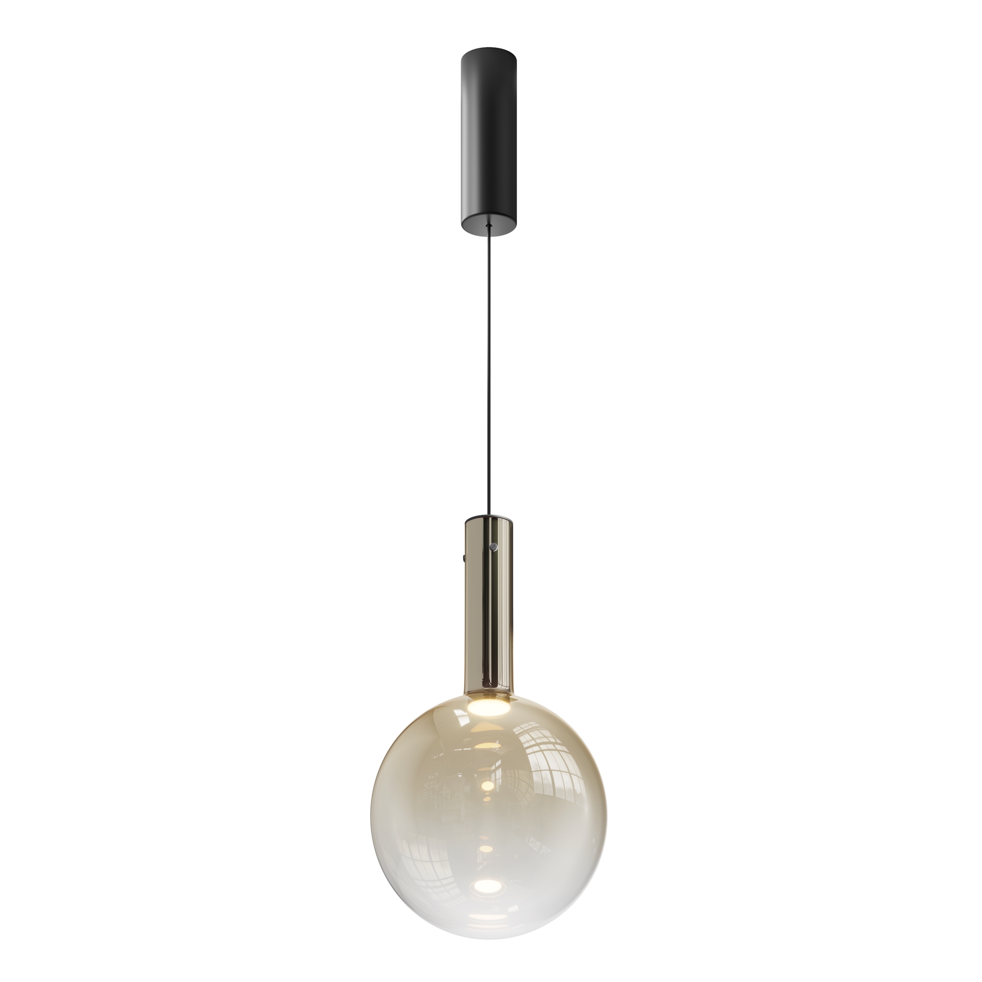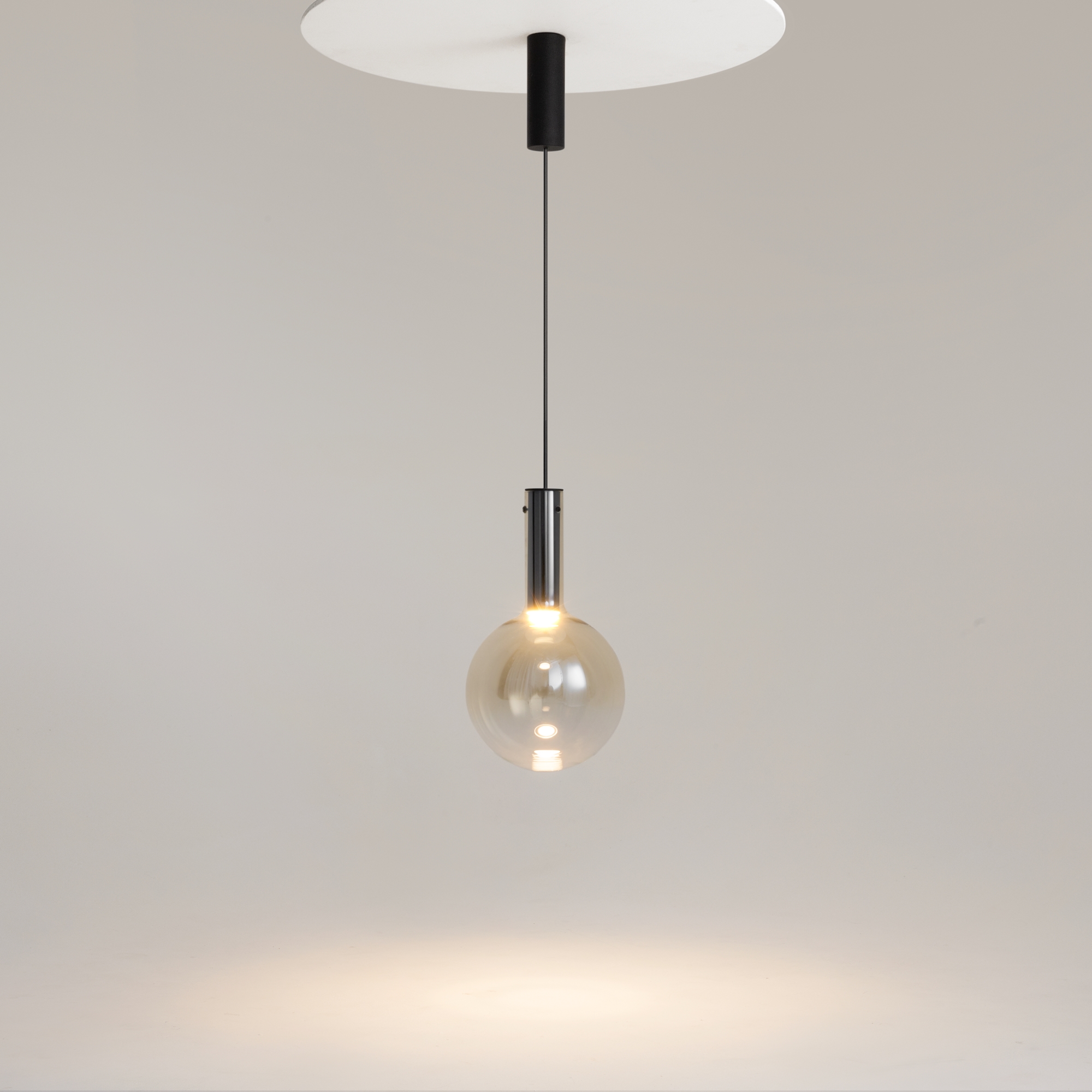 Металлическая арматура, цвет — черный, белый. Выдувной плафон-шар из стекла с вытянутым цилиндрическим основанием в трех цветах: дымчато-черный, туманно-белый, бежево-коньячный. LED-источник света в основании плафона. Цветовая температура 3000К. Два диаметра плафонов и регулируемая длина проводов для создания разнообразных композиций.