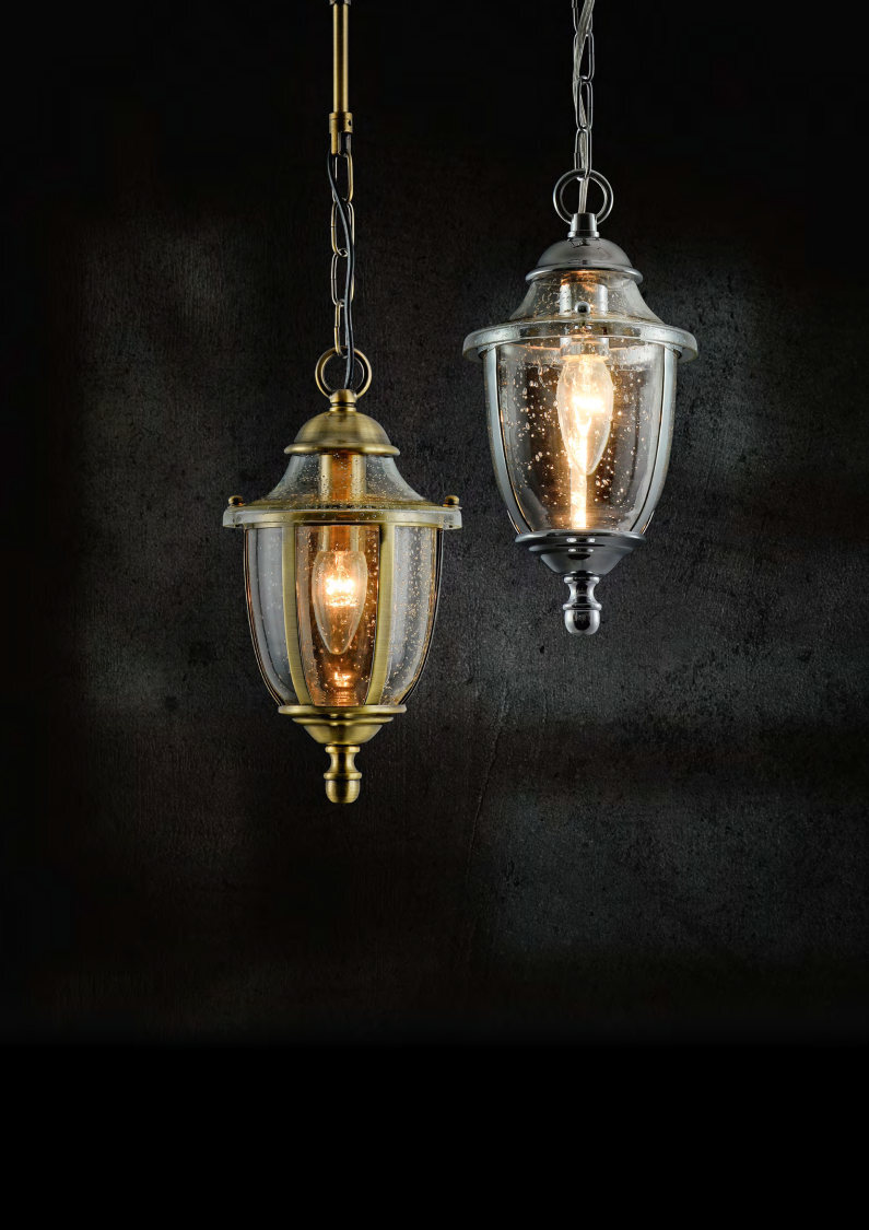 Металлическая арматура в двух оттенках: хром и бронза. Плафон – прозрачное выдувное стекло с металлическим каркасом.