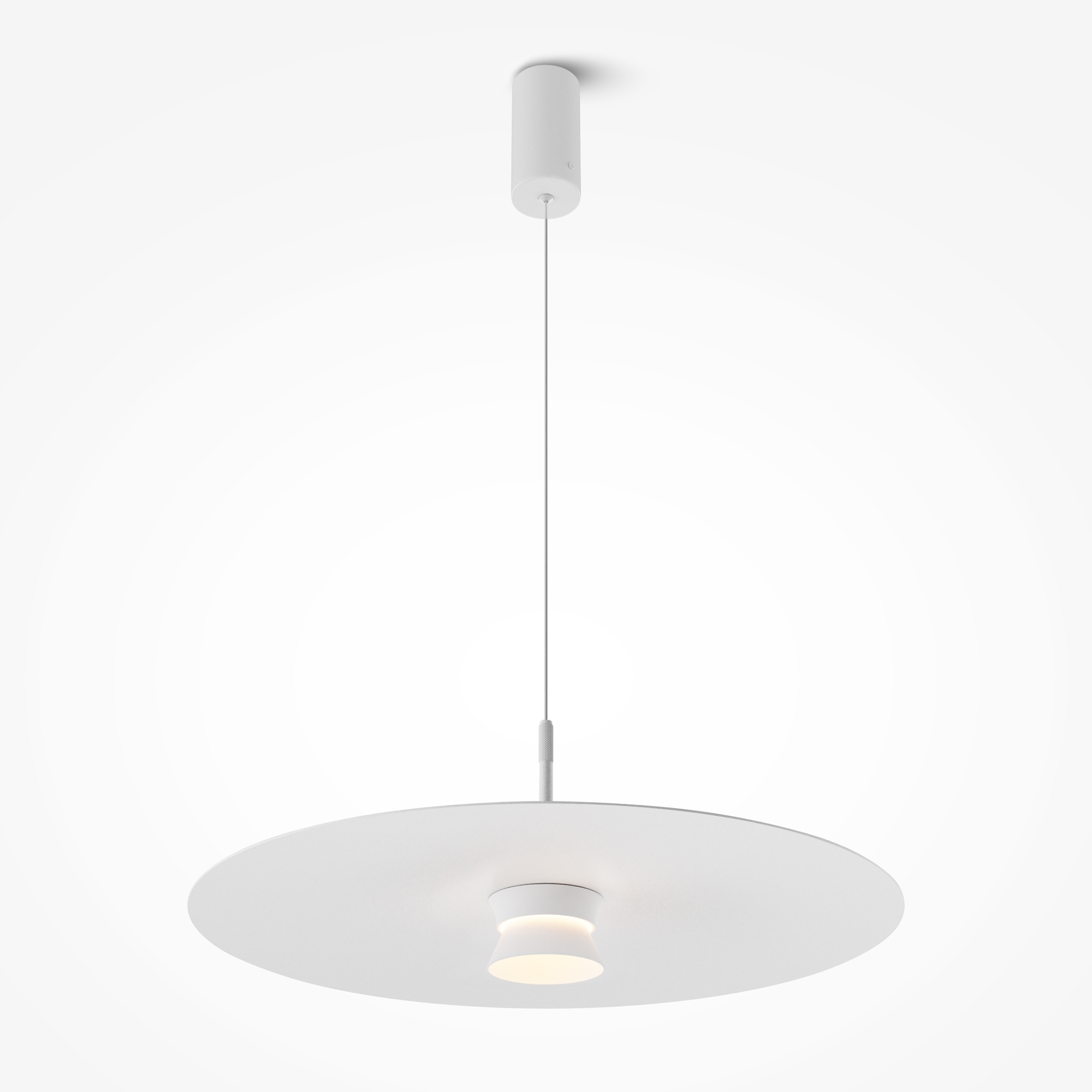 Серия Platte представлена одинарными подвесными светильниками диаметром 350 и 500 мм. Цвет металлической арматуры и плафонов – белый. Источник света – LED. Тип рассеивания — рассеянный. Цветовая температура — 3000 К. Угол рассеивания — 125°. В серии предусмотрен длинный регулируемый провод 3 м.