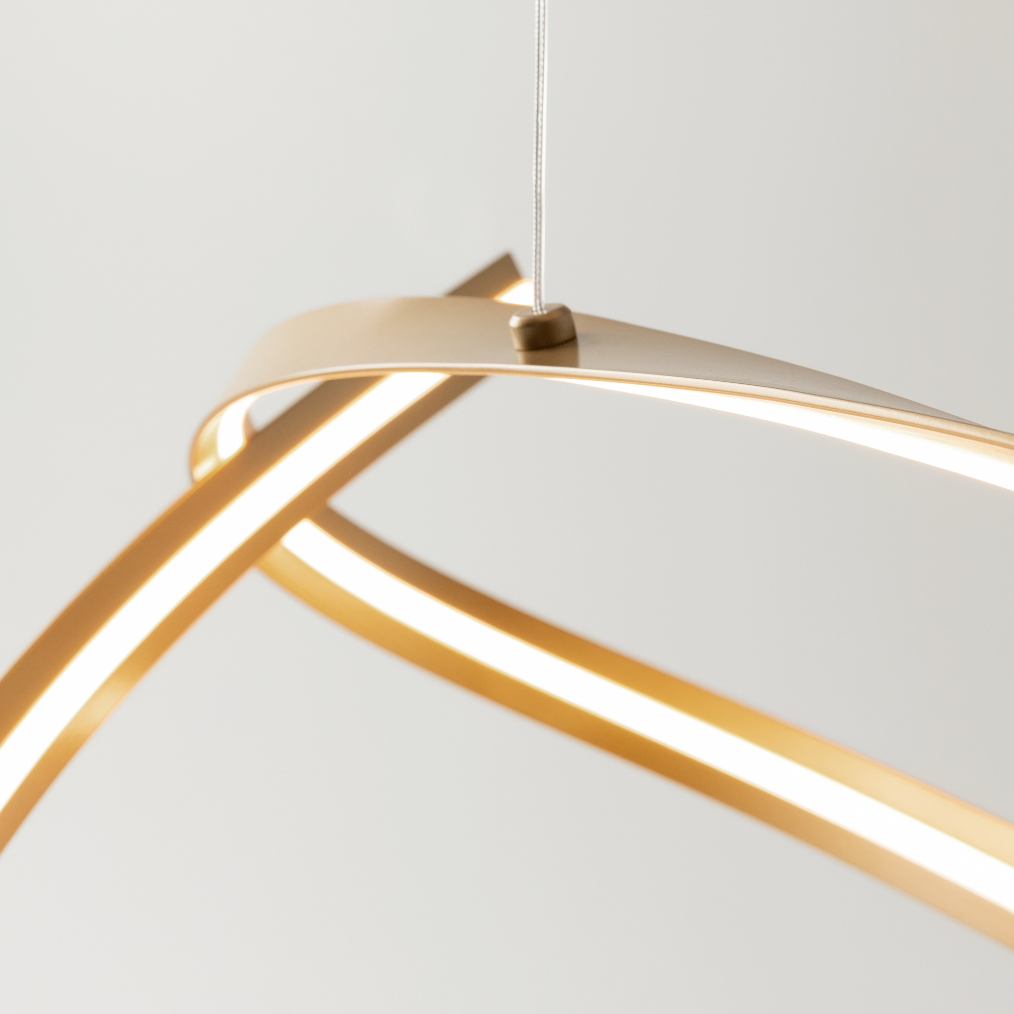 Материал арматуры — алюминий, цвет латунь. Силиконовый рассеиватель. LED-источник света, цветовая температура 3000К. Регулируемый провод у подвесных моделей — 3 метра.