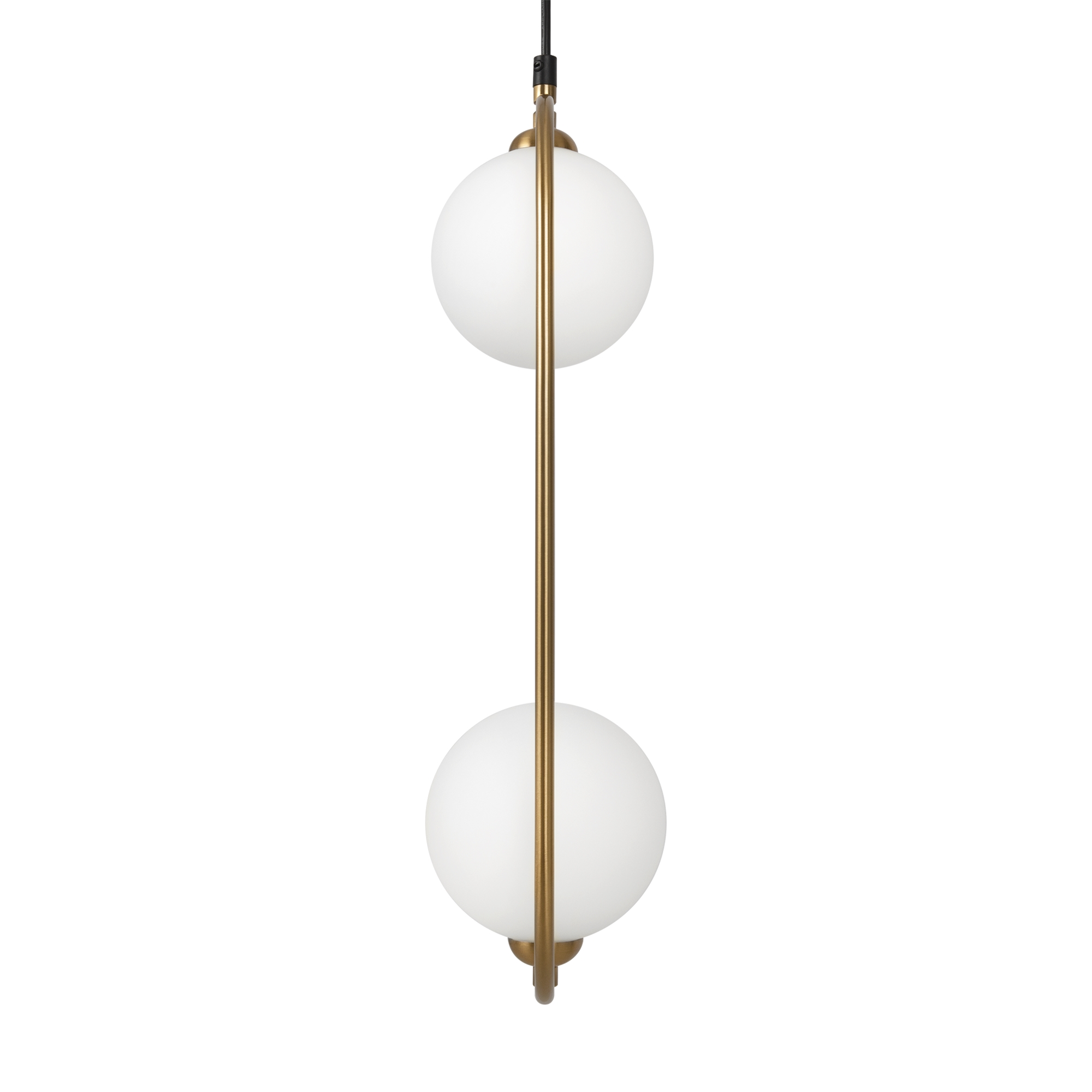 Арматура из металла в трех оттенках: белый, черный, латунь. Плафоны-сферы закреплены на округлом металлическом каркасе. Материал плафонов — выдувное стекло, цвет — белый. Высота подвесных моделей регулируется.