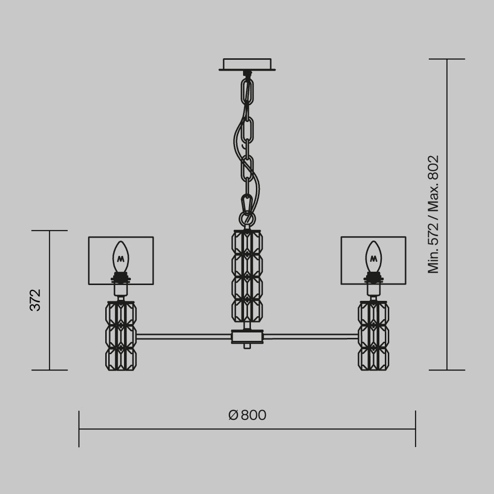 Арматура из металла, цвет – хром. Абажуры из текстиля, нанесенного на ПВХ. Цвет – белый. Декор – массивные кристаллы сложной огранки. Высота подвесных моделей регулируется.