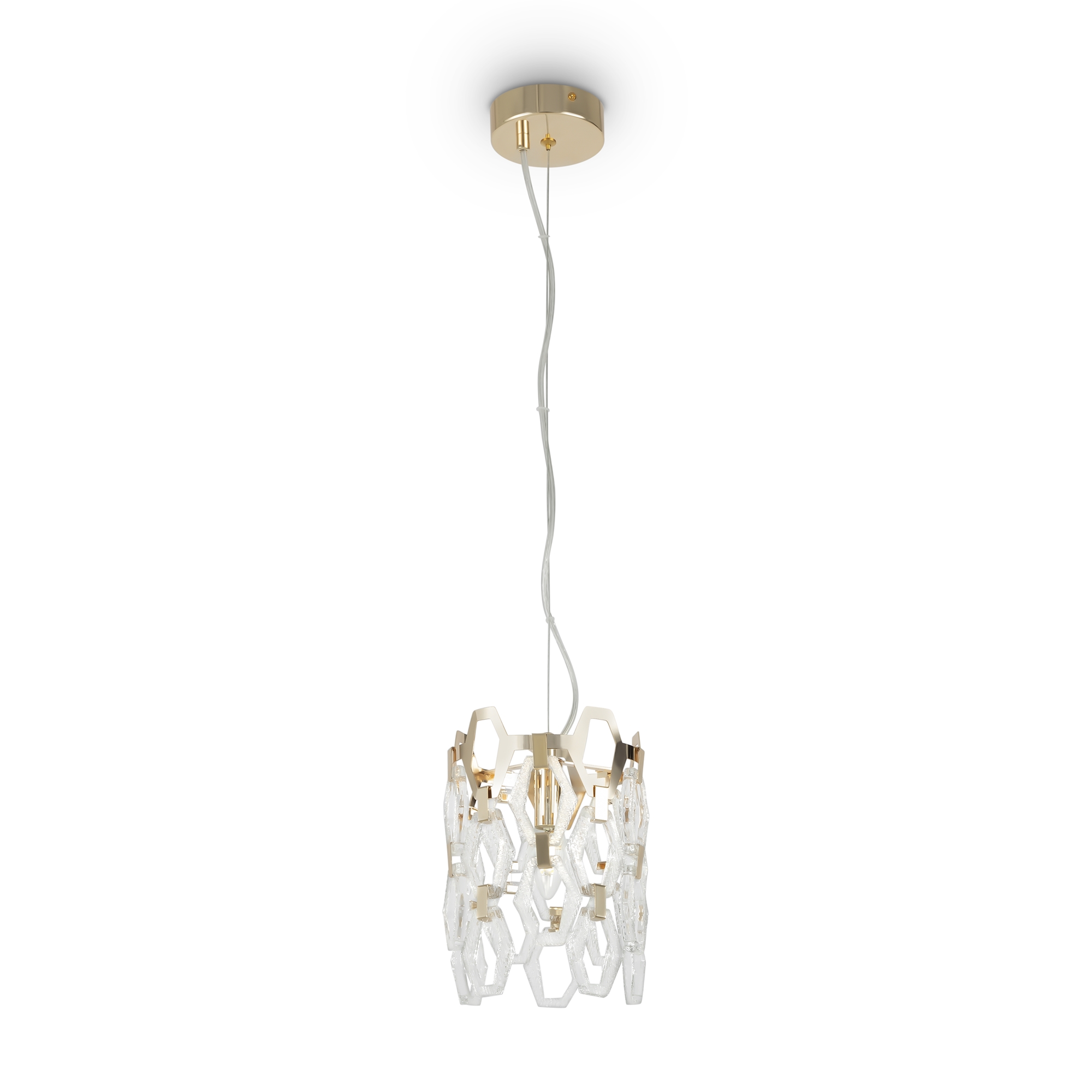 Арматура – металл, цвет – золото. Декоративные подвески – фактурное стекло и металлические пластины. Трендовые геометричные формы. Эффектная игра света в декоре. Широкий ассортимент для общего и зонального освещения.