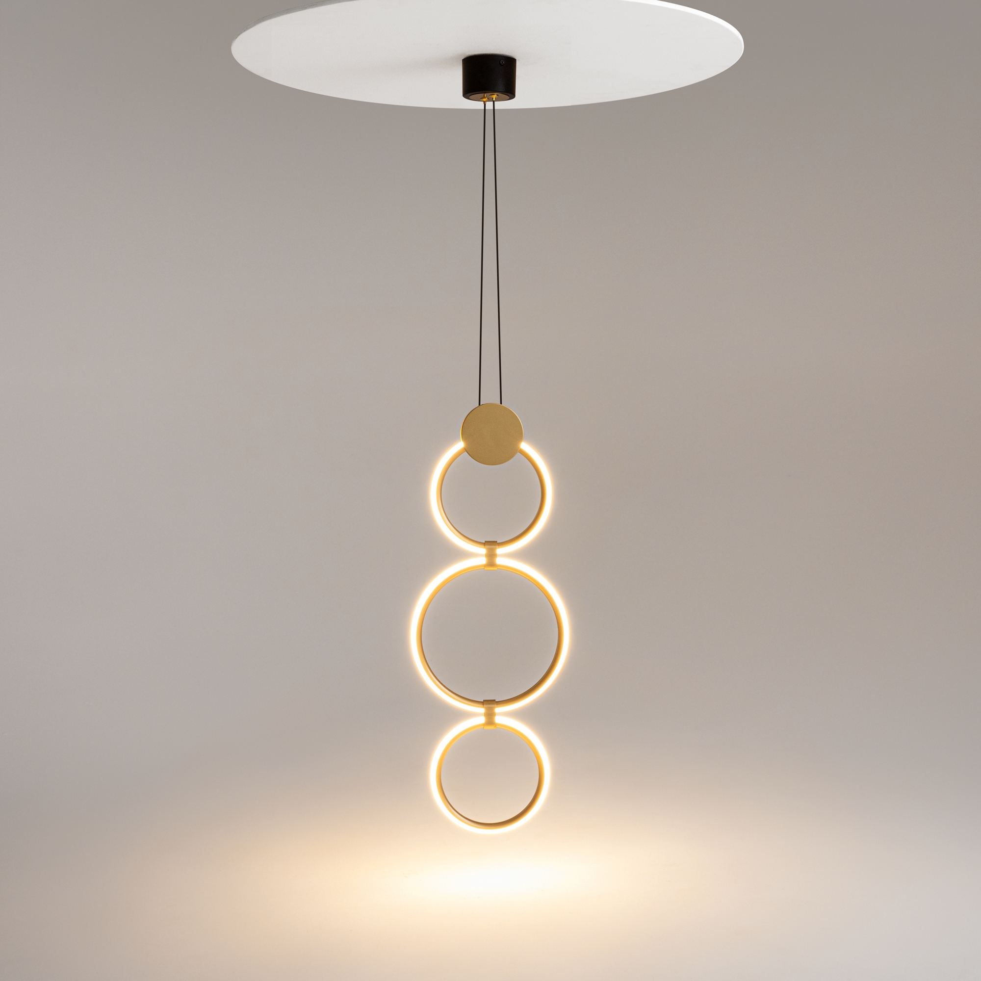 Серия Link представлена подвесными и настенными светильниками с разной вариацией светодиодных колец. Арматура — из металла в цвете латунь с чёрными элементами. Источник света — LED-кольца. Цветовая температура — 3000 K. Угол рассеивания — 125 градусов. Провод регулируемый, 3 метра.