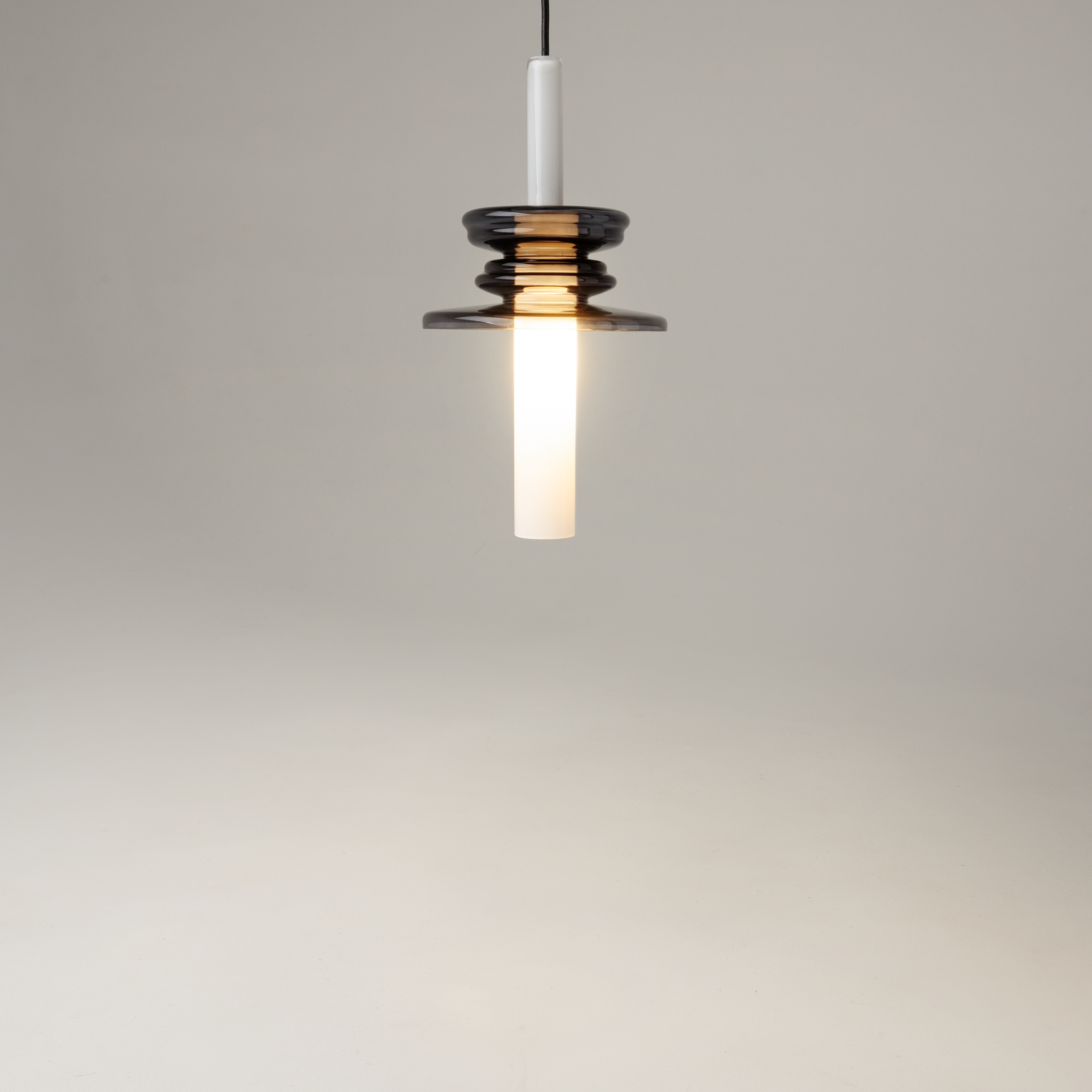 Уникальная многослойная конструкция в образе звуковой волны. Магнитная потололчная чаша из металла без видимых креплений. Плафон-трубка из белого полупрозрачного стекла. Декоративный волнообразный «звуковой» элемент из литого стекла в центре плафона. Цвета — синий, черный, золото, серый. Источник света — лампа с цоколем G9.