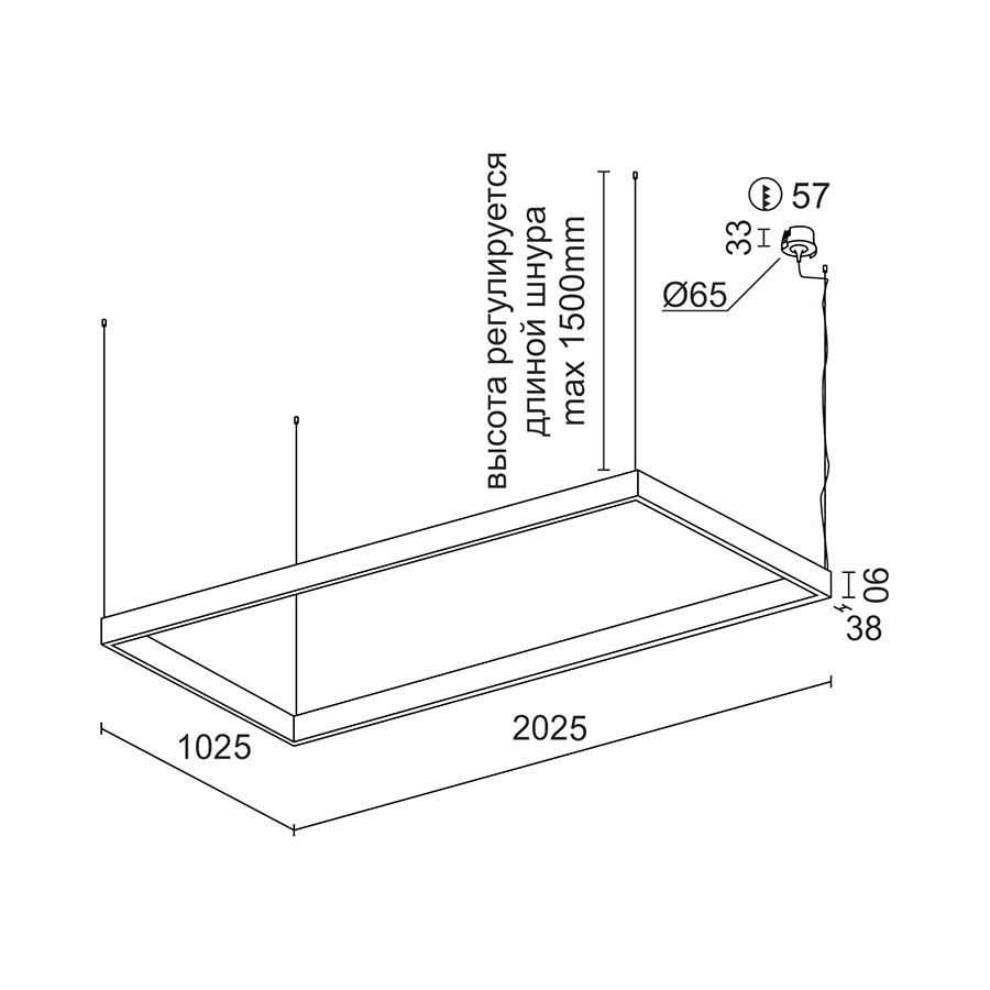 Подвесной светодиодный светильник Ledron KVADRO Basic 1025х2025 White 4000K