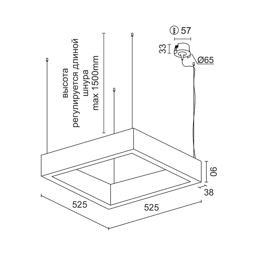 Подвесной светодиодный светильник Ledron KVADRO Basic 525 Black 4000K