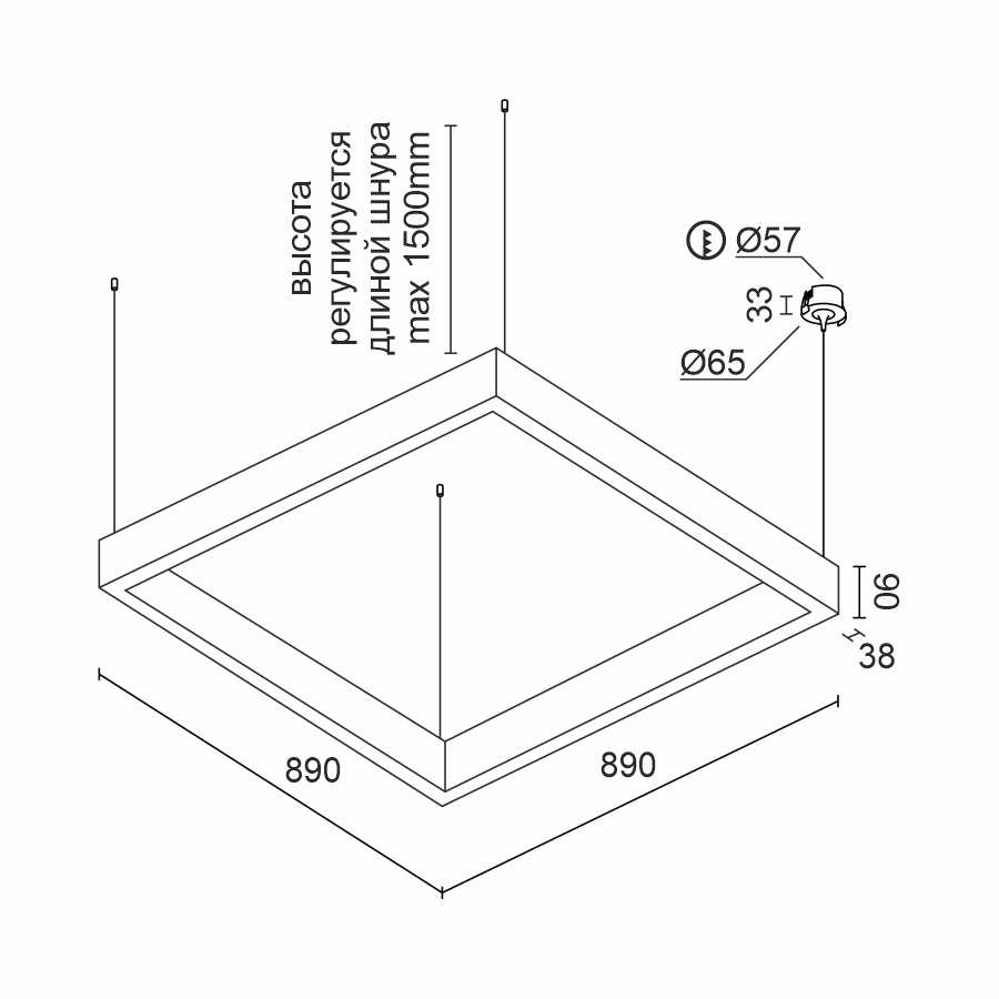 Подвесной светодиодный светильник Ledron KVADRO Basic 890 White 4000K