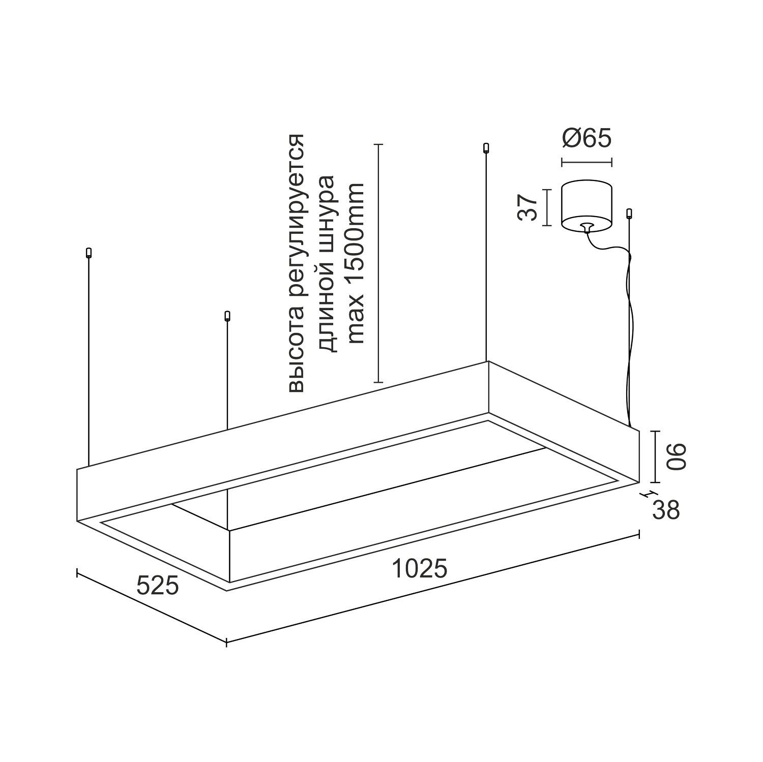 Подвесной светодиодный светильник Ledron KVADRO HL 525х1025 Black 4000K
