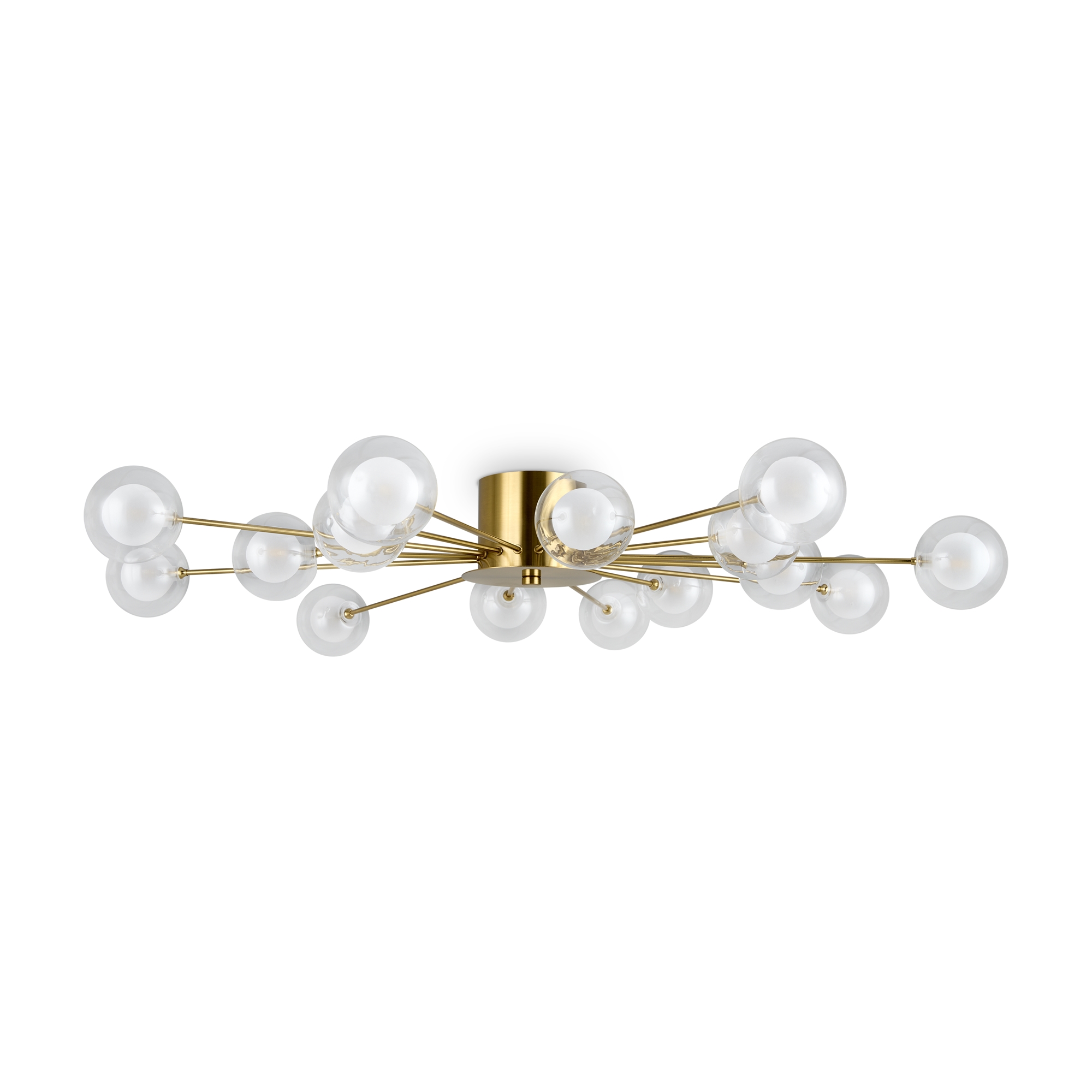 Арматура — металл, цвет — черный, золотой. Плафоны двух видов: из двойного стекла — матового и прозрачного; акриловые с металлическим покрытием половины плафона в цвете латунь. Светильники серии Celebrity отлично подойдут для помещений с не высокими потолками. Источник света — лампа с цоколем G9.