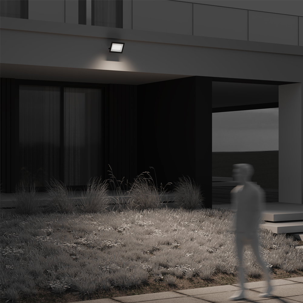 Прожекторы для освещения экстерьеров, рабочих пространств, производственных и промышленных помещений. Материал корпуса — алюминий. Цвет — чёрный. LED-источник света. Два варианта цветовой температуры — 4000К и 6500К. Пять размеров с соответствующими вариантами мощности — 10, 30, 50 Вт с датчиком движения. Модели 100 и 150 Вт без датчиков движения. Высокая степень защиты от пыли и влаги IP65.