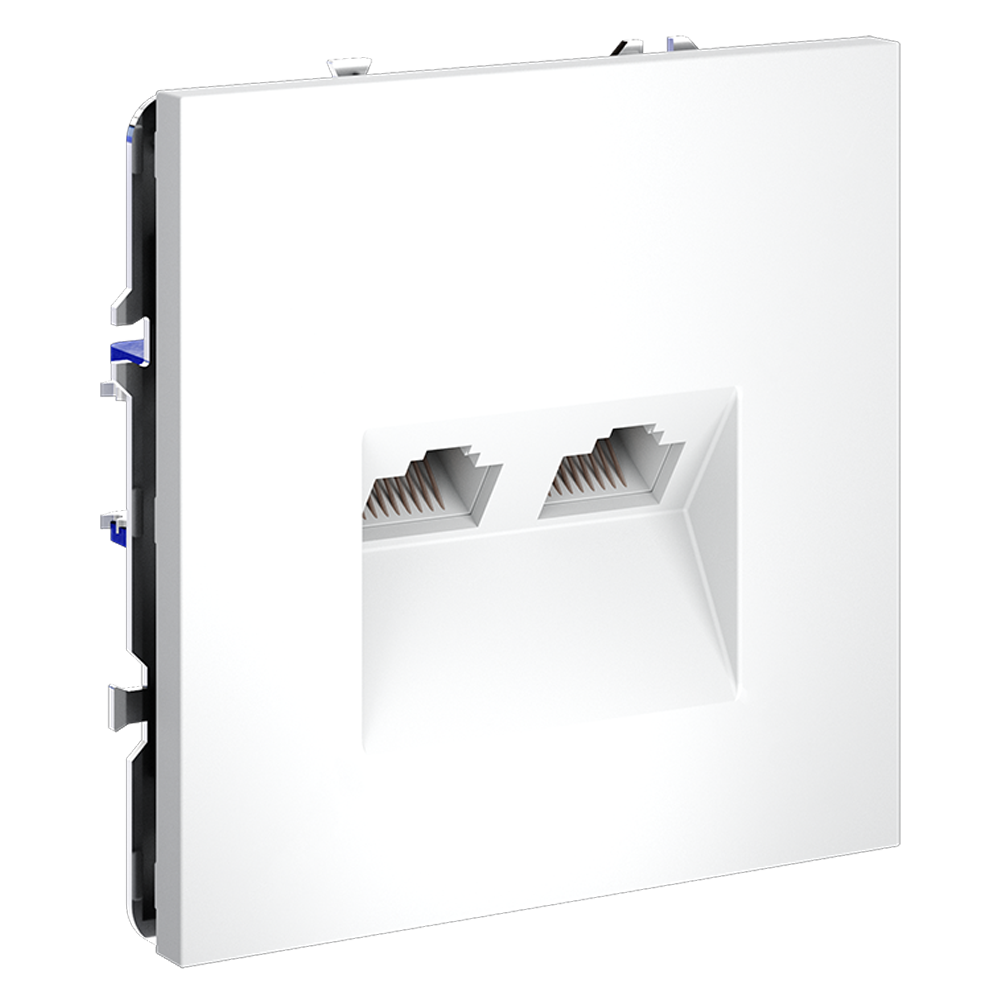 Розетка компьютерная встраиваемая VOLTUM S70 двойная RJ45+RJ45 кат.6, (белый матовый)