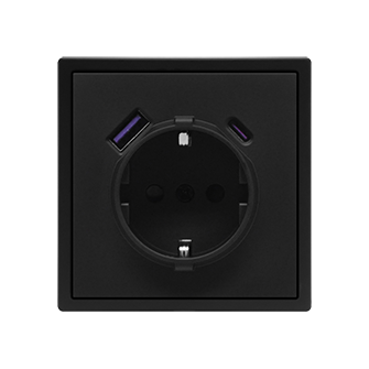 EU Socket with USB A+C 20W BlackРозетка одинарная с заземлением с USB-портом для зарядки Type A + Type C