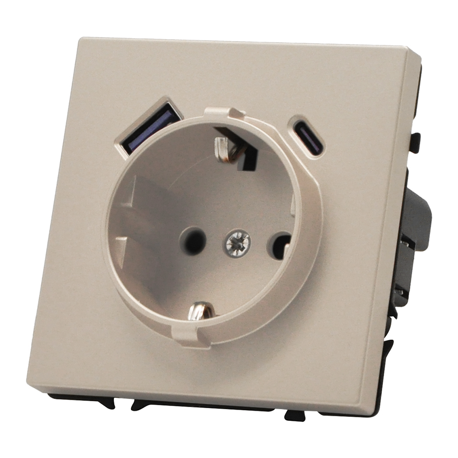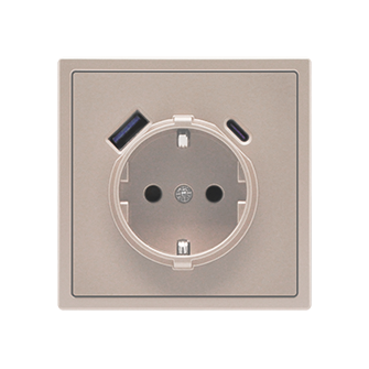 EU Socket with USB A+C 20W CashmereРозетка одинарная с заземлением с USB-портом для зарядки Type A + Type C