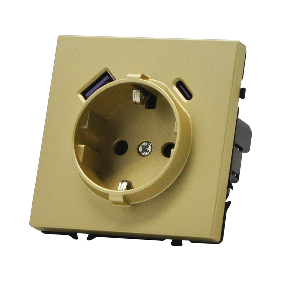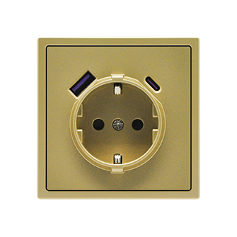 EU Socket with USB A+C 20W GoldРозетка одинарная с заземлением с USB-портом для зарядки Type A + Type C