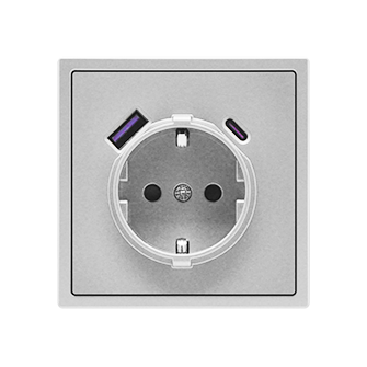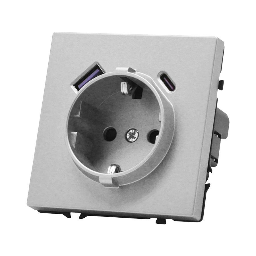 EU Socket with USB A+C 20W Light GreyРозетка одинарная с заземлением с USB-портом для зарядки Type A + Type C