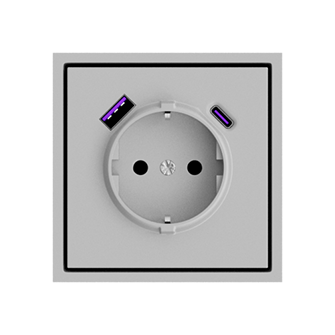 Розетка одинарная с заземлением с USB-портом для зарядки Type A + Type C
