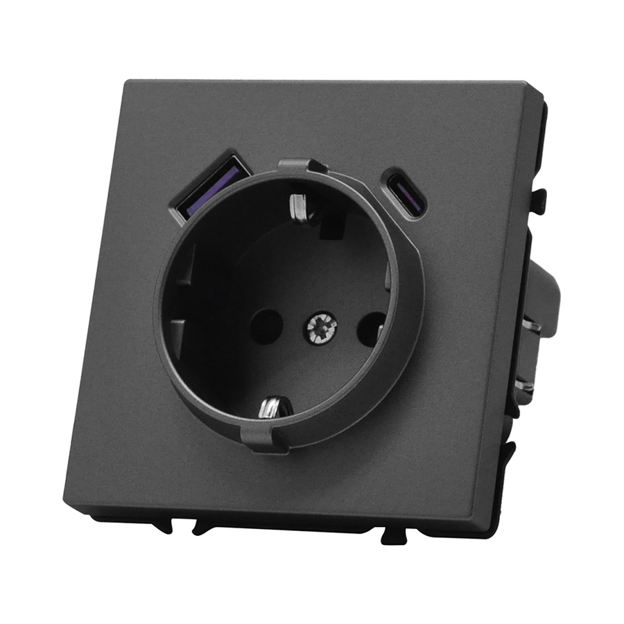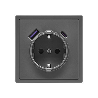 EU Socket with USB A+C 20W GreyРозетка одинарная с заземлением с USB-портом для зарядки Type A + Type C