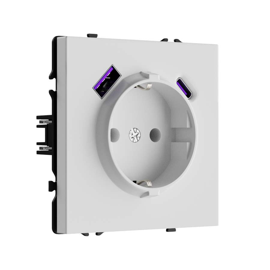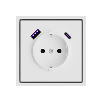 Розетка одинарная с заземлением с USB-портом для зарядки Type A + Type C