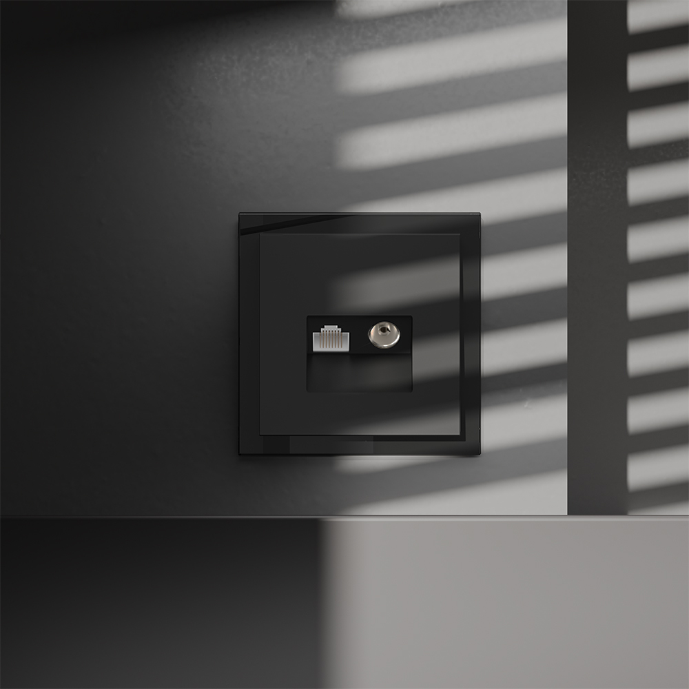 VLS060708Розетка телевизионная встраиваемая VOLTUM S70 TV+RJ45 кат. 6, (черный матовый)