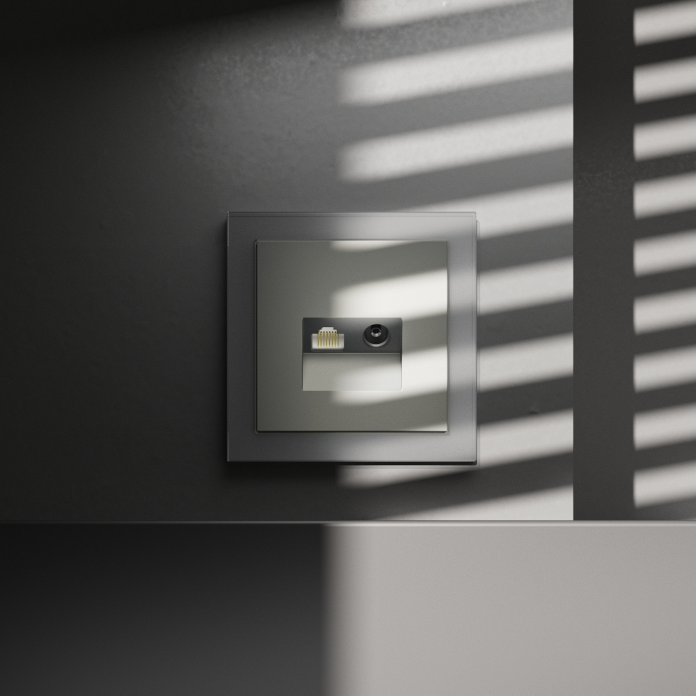 Розетка телевизионная встраиваемая VOLTUM S70 TV+RJ45 кат. 6, (сталь)