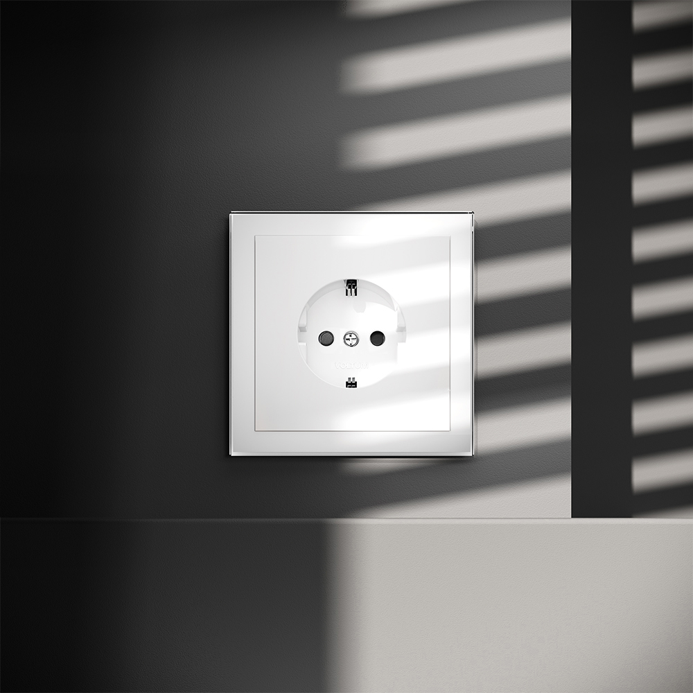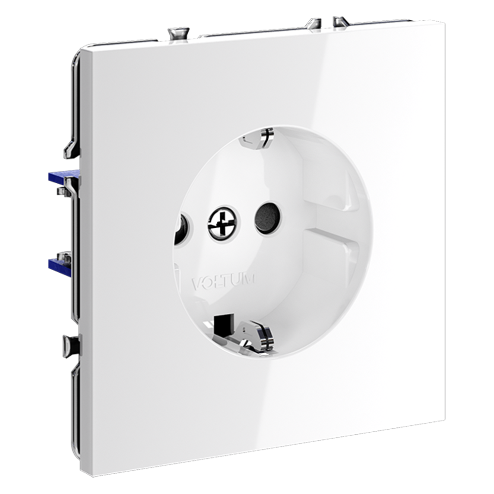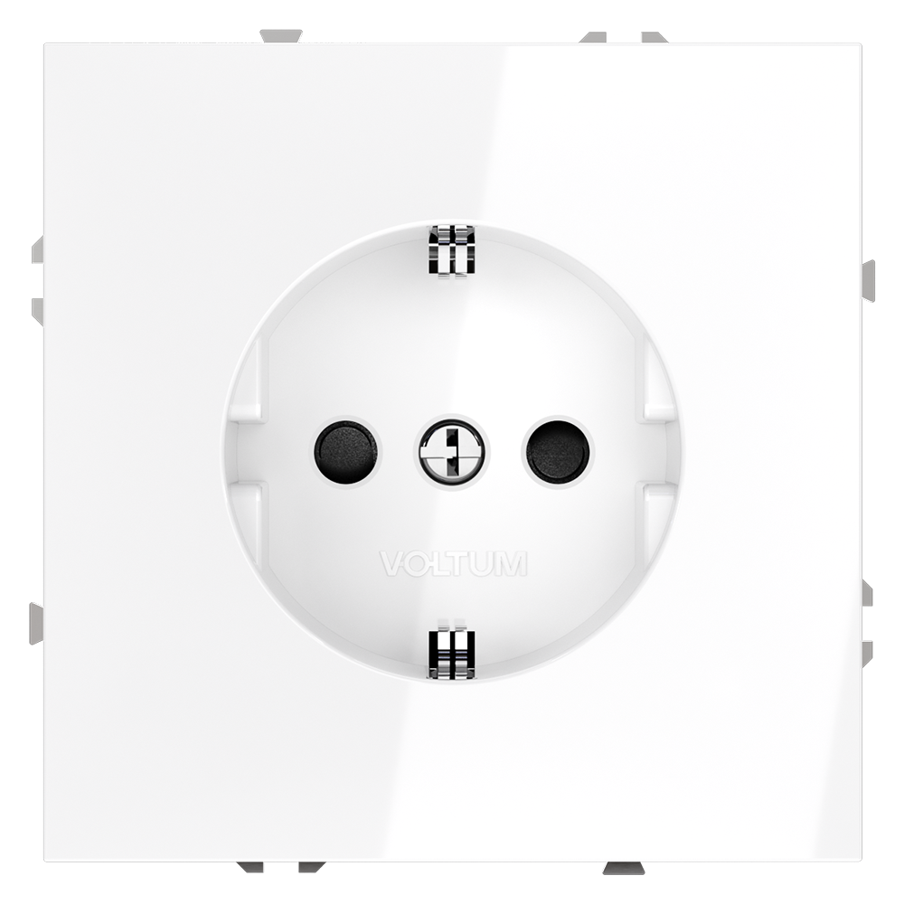 Розетка встраиваемая VOLTUM S70 с заземлением и защитными шторками, 16А, (белый глянцевый)