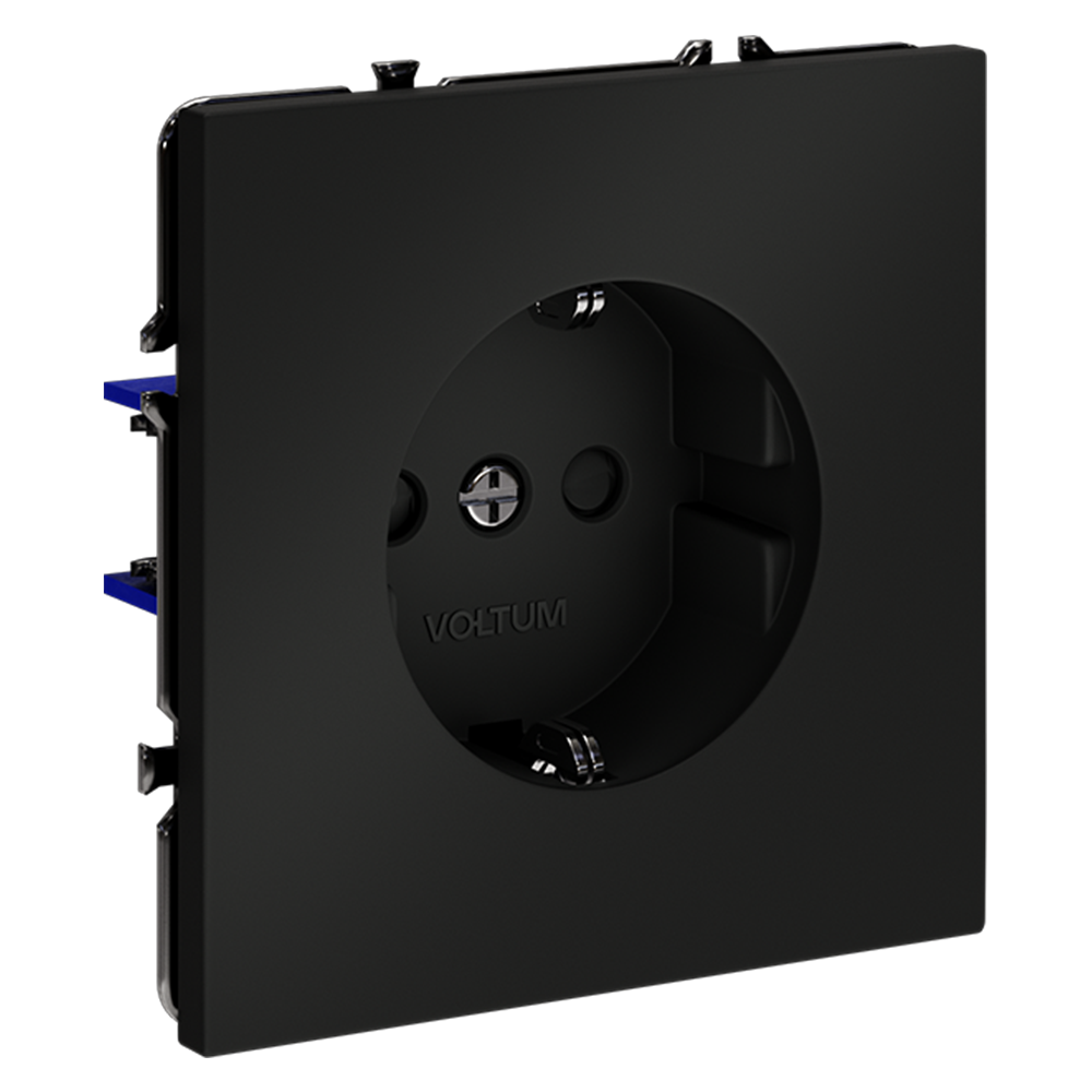 Розетка встраиваемая VOLTUM S70 с заземлением и защитными шторками, 16А, (черный матовый)