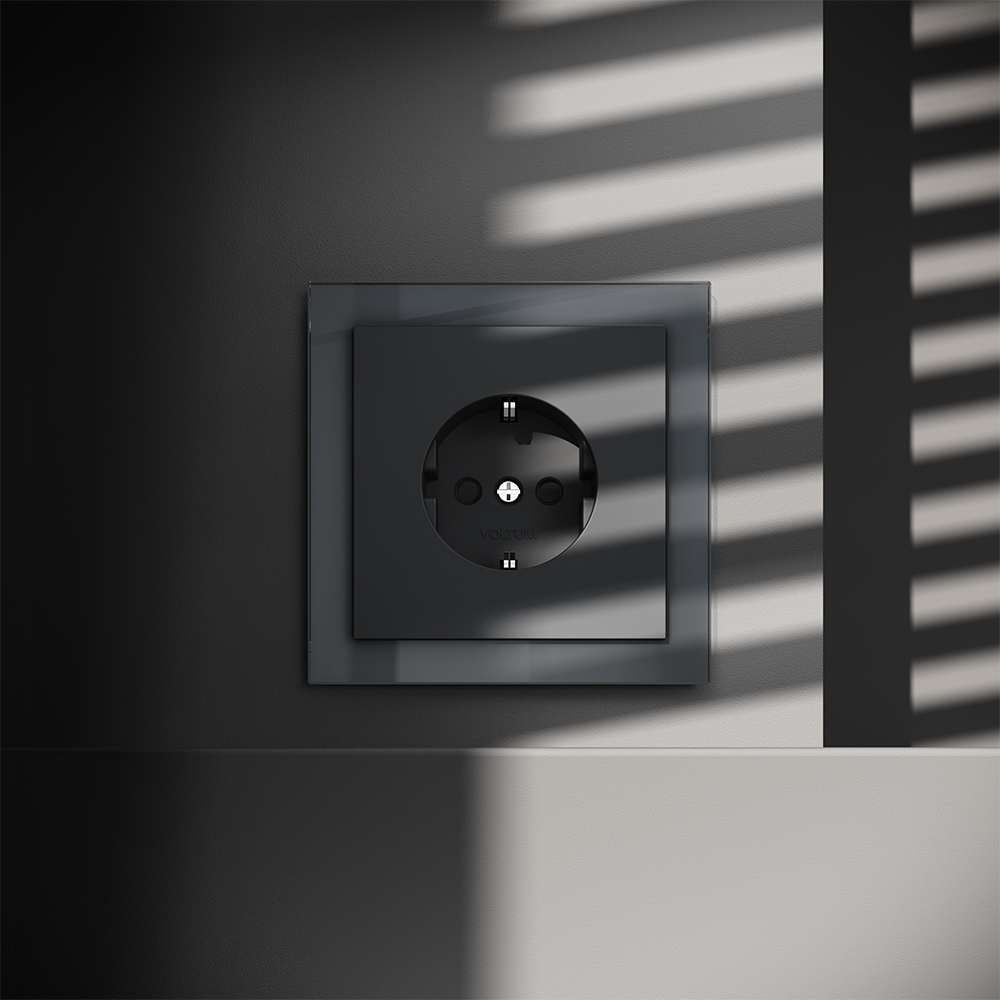 Розетка встраиваемая VOLTUM S70 с заземлением и защитными шторками, 16А, (графит)
