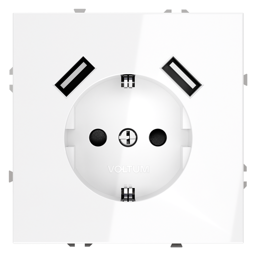 Розетка встраиваемая VOLTUM S70 с заземлением и защитными шторками, 16А, с USB, A+A, (белый глянцевы