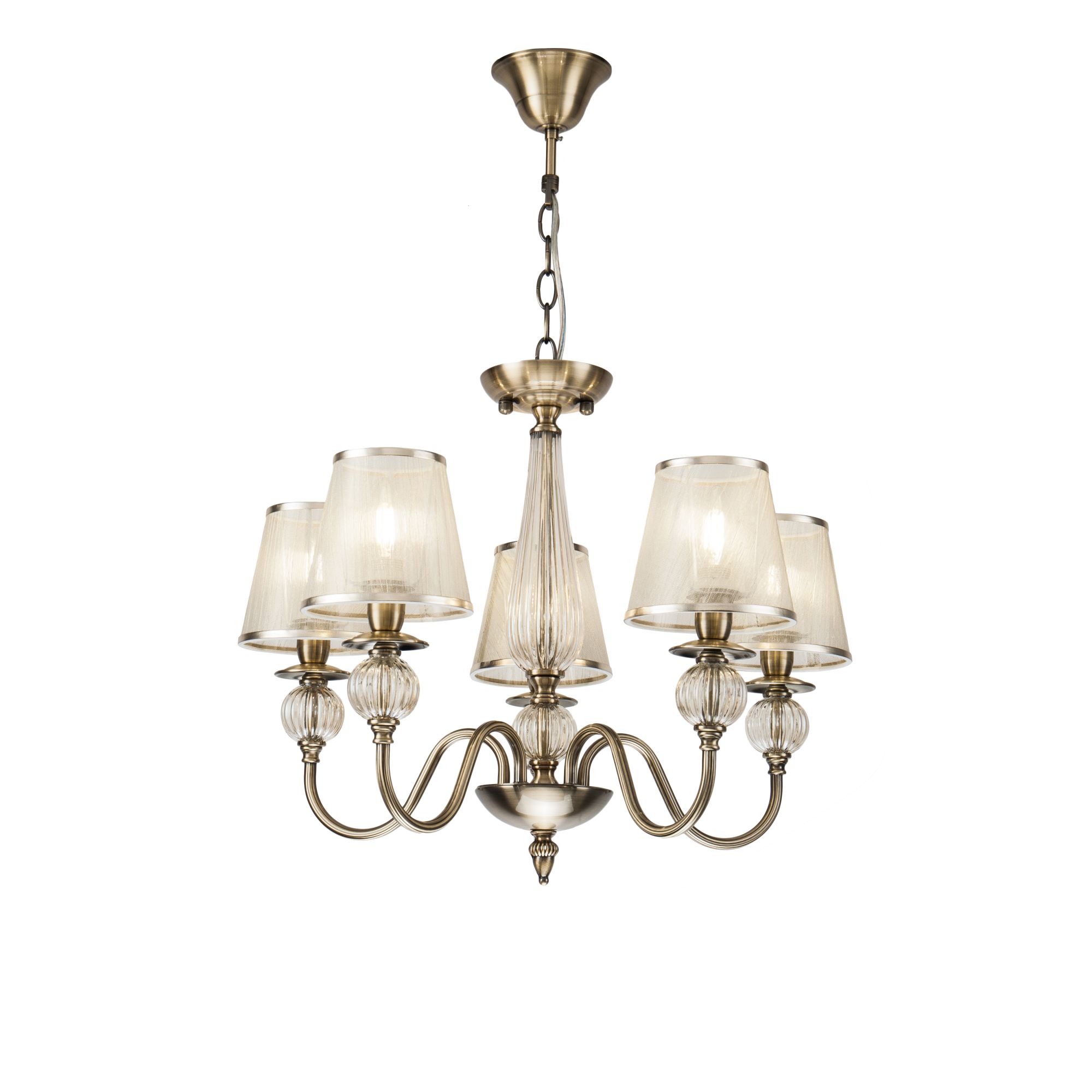 Серия в классическом стиле. Главное украшение светильников Inessa – декоративные элементы арматуры из прозрачного стекла коньячного оттенка. Абажуры выполнены из органзы и обрамлены тесьмой в цвет арматуры, сделанной из металла. Широкая линейка позволит осветить все зоны помещения в едином стиле. Люстра Freya FR2685PL-05BZ