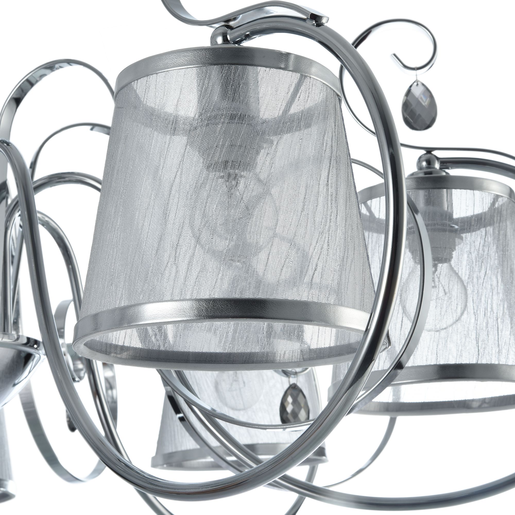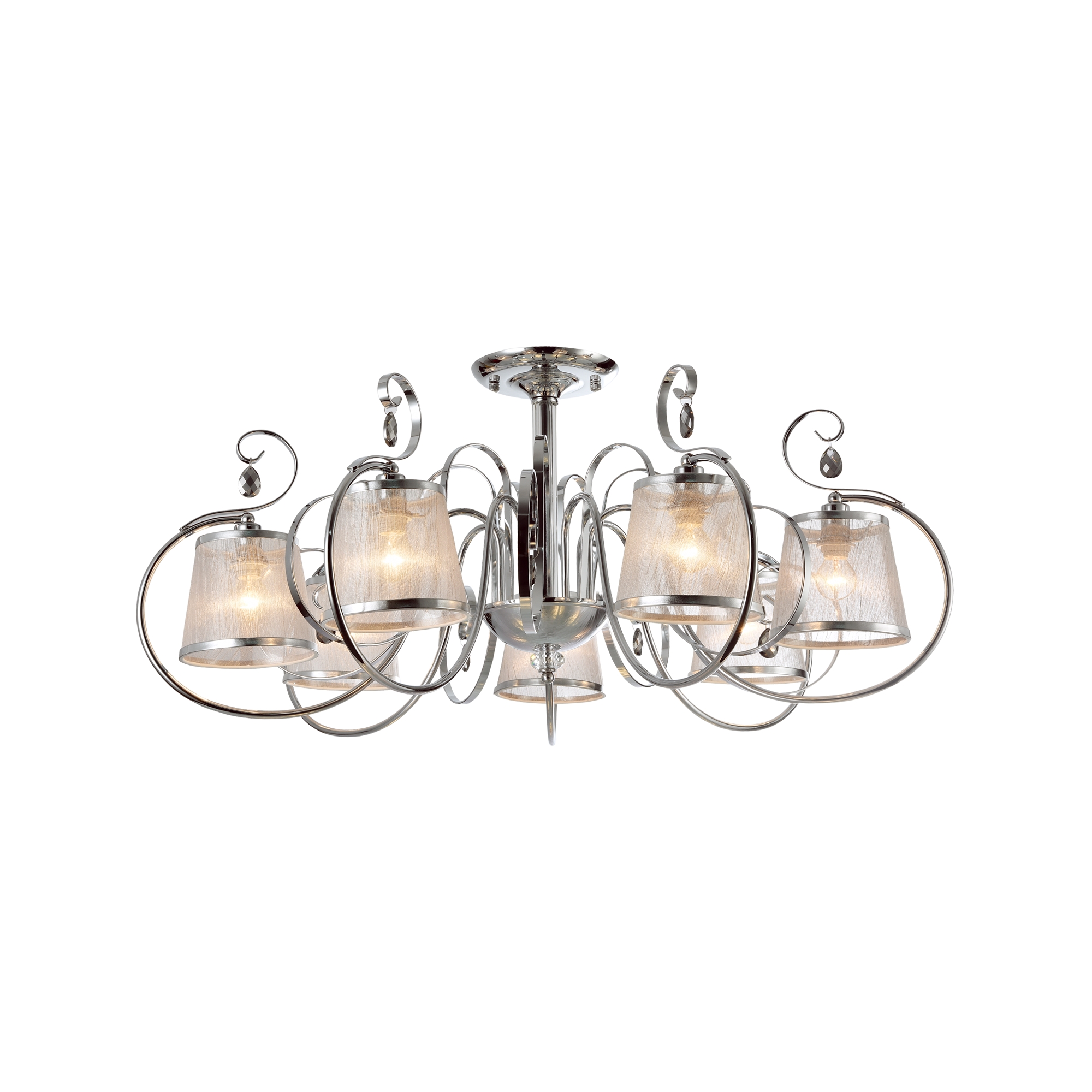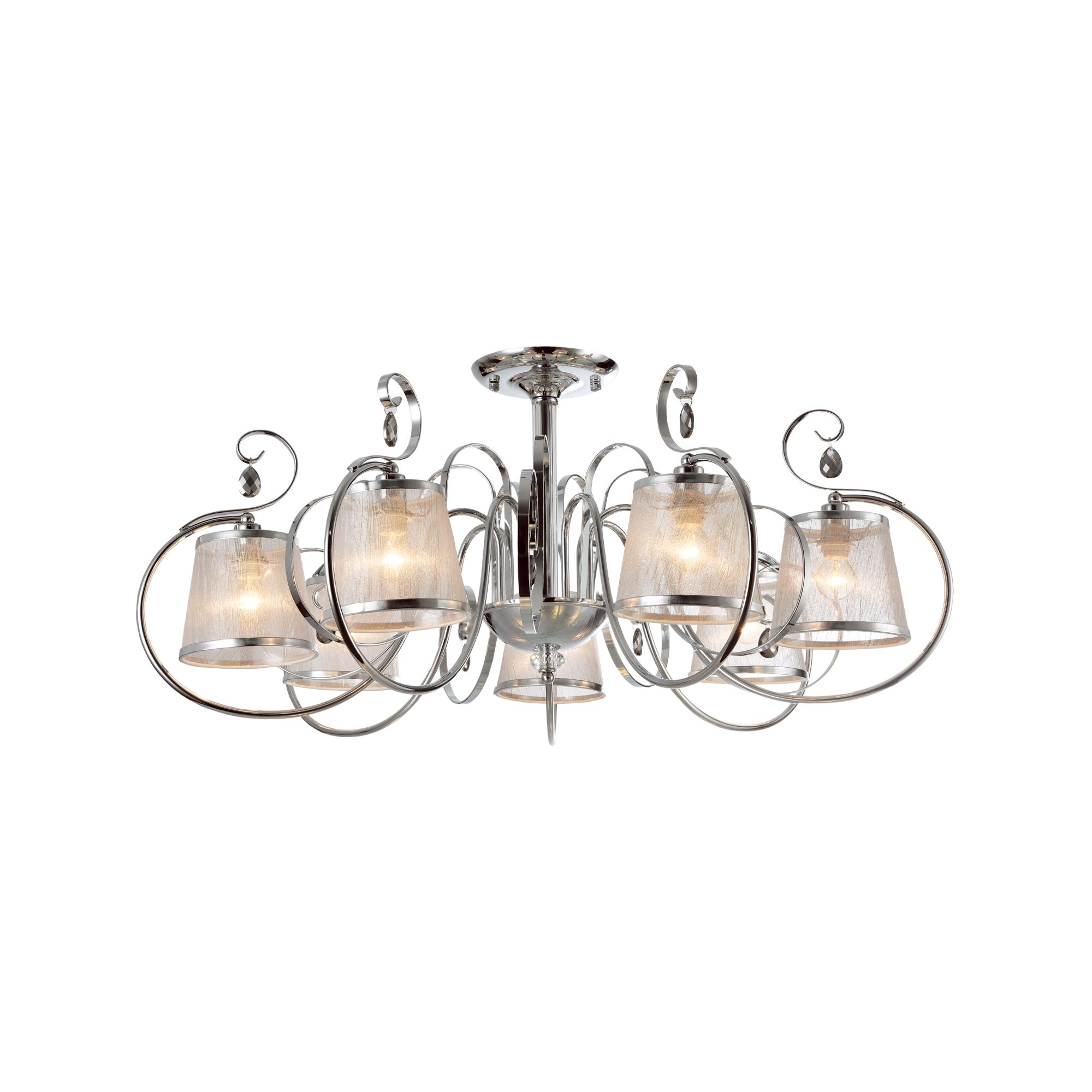 Светильники серии Simone выполнены в классическом стиле. Арматура цвета «античное серебро», абажуры из органзы на ПВХ. Люстры подходят для помещений с невысокими потолками благодаря конструкции «2 в 1». Дизайн изделий дополнен декоративными подвесками. Потолочный светильник Freya FR2020-CL-07-CH