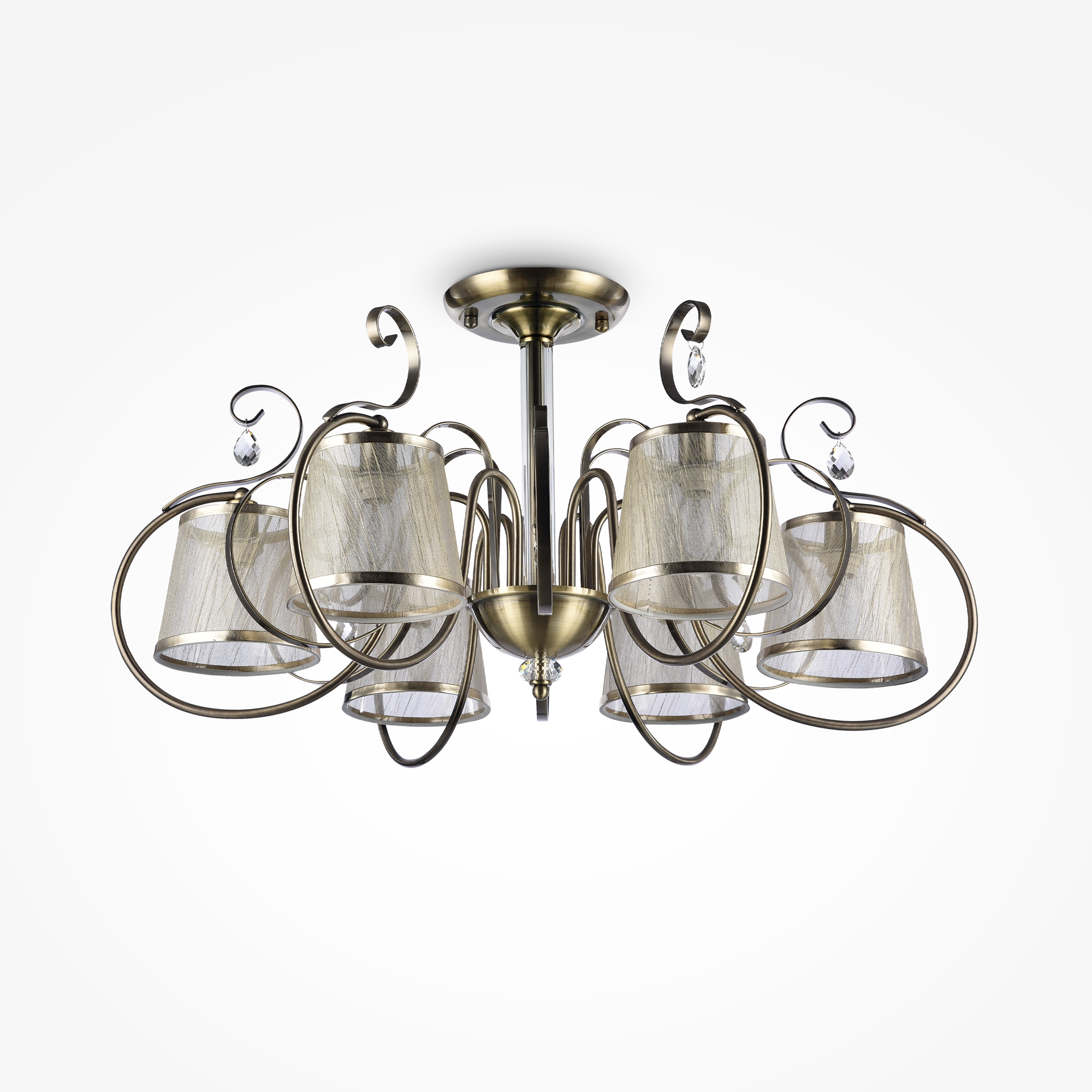 Светильники серии Simone выполнены в классическом стиле. Арматура цвета «античное серебро», абажуры из органзы на ПВХ. Люстры подходят для помещений с невысокими потолками благодаря конструкции «2 в 1». Дизайн изделий дополнен декоративными подвесками. Потолочный светильник Freya FR2020-PL-06-BZ