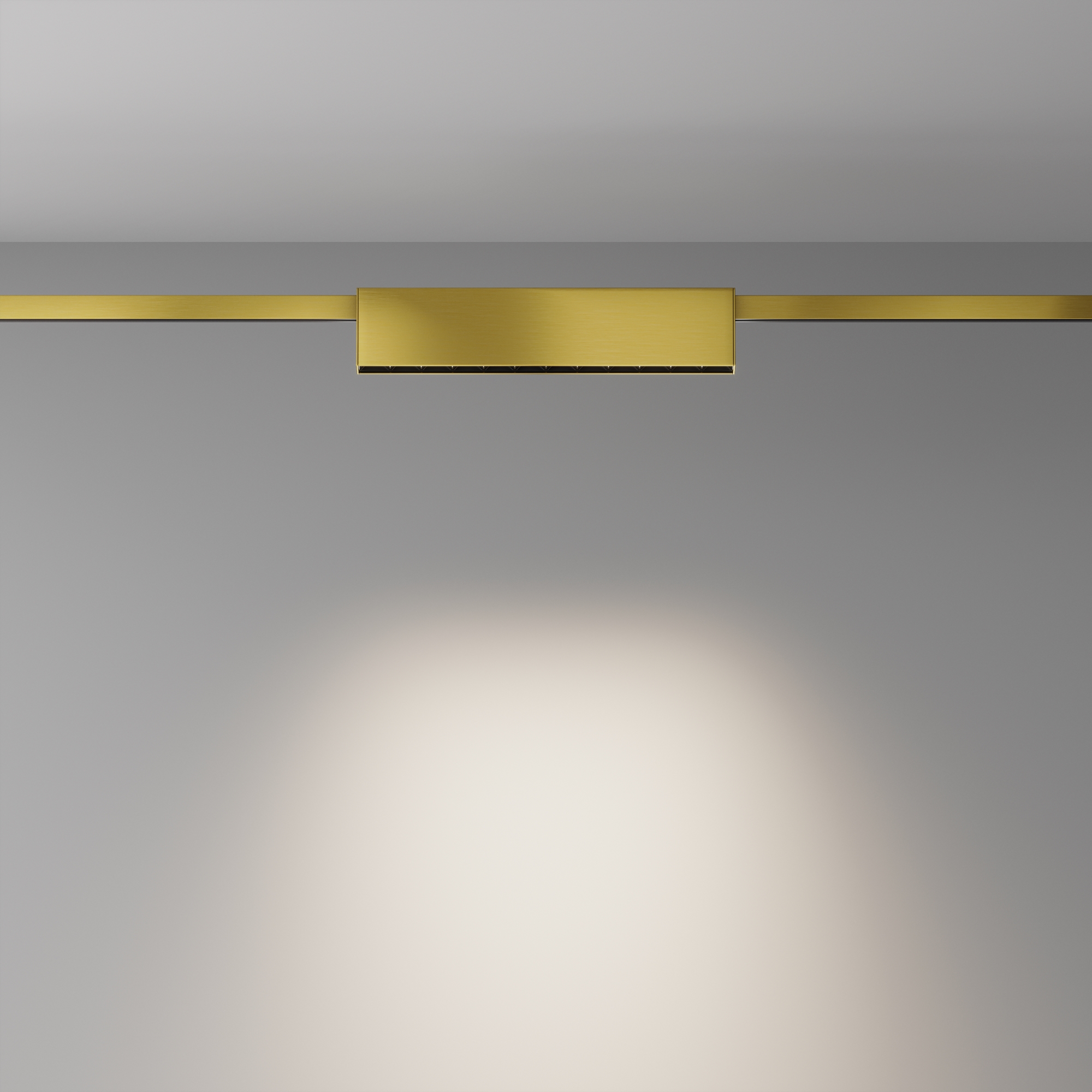 Материал изготовления корпуса — алюминий. Выполнен в черном цвете или в цвете латунь. Источник света – светодиодные лампы бренда Osram мощностью 12В со следующими характеристиками: угол рассеивания — 40°, индекс цветопередачи выше Ra 90, цветовая температура — 3000К. Наличие в конструкции специальной линзованной оптики отвечает за формирование точно сфокусированного луча для яркого светового акцента. Общая длина светильника 232 мм. Доступна функция диммирования при установки соответствующих блоков питания.