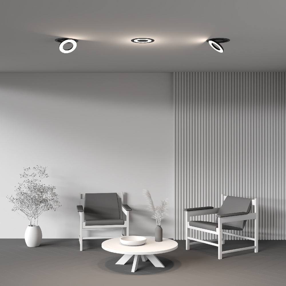 Первая дизайнерская серия встраиваемых потолочных светильников Maytoni. Вдохновение образом Гало. Материал корпуса — алюминий; цвета — черный, белый. Широкий угол рассеивания 100°. Цветовая температура 2700, 3000 и 4000К в зависимости от модели. Поворотный механизм 90° и 355° по горизонтали и вертикали. Белый матовый рассеиватель. Мягкое освещение. Компактная глубина встройки. Совместимость с источниками питания Dali и Triac. Эксклюзивный дизайн.
