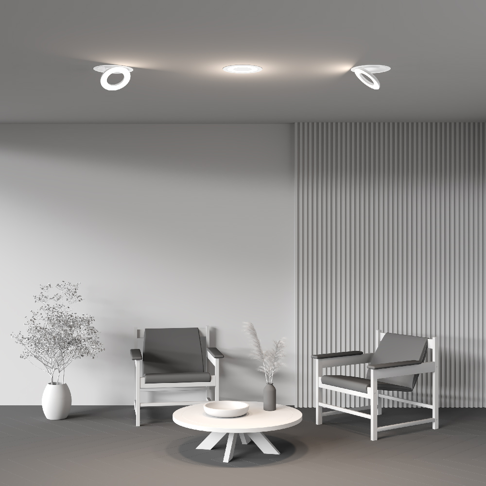 Первая дизайнерская серия встраиваемых потолочных светильников Maytoni. Вдохновение образом Гало. Материал корпуса — алюминий; цвета — черный, белый. Широкий угол рассеивания 100°. Цветовая температура 2700, 3000 и 4000К в зависимости от модели. Поворотный механизм 90° и 355° по горизонтали и вертикали. Белый матовый рассеиватель. Мягкое освещение. Компактная глубина встройки. Совместимость с источниками питания Dali и Triac. Эксклюзивный дизайн.