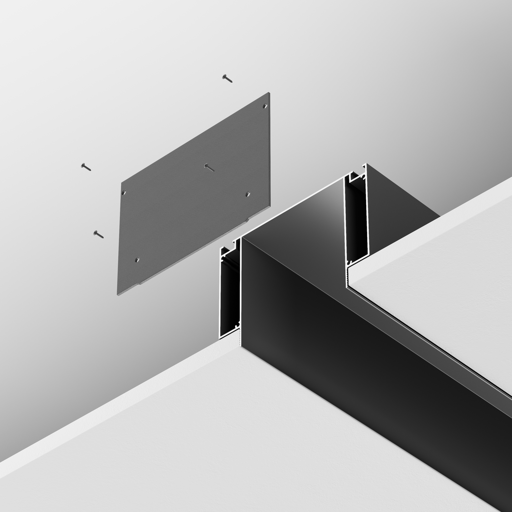 Ниши скрытого монтажа предназначены для трековых систем и потолочных светильников. Они позволяют добавить в ваш интерьер больше минимализма и геометрии. Для натяжного потолка: Ниши скрытого монтажа 9940, подходят для монтажа в натяжной ПВХ потолок. Вы можете установить данную нишу в тканевый потолок при помощи клинча, который потребуется приобрести в специализированном магазине. Для Гипсокартона: Ниши скрытого монтажа 11681, подходят для монтажа в потолок из гипсокартона, под лист 12мм.