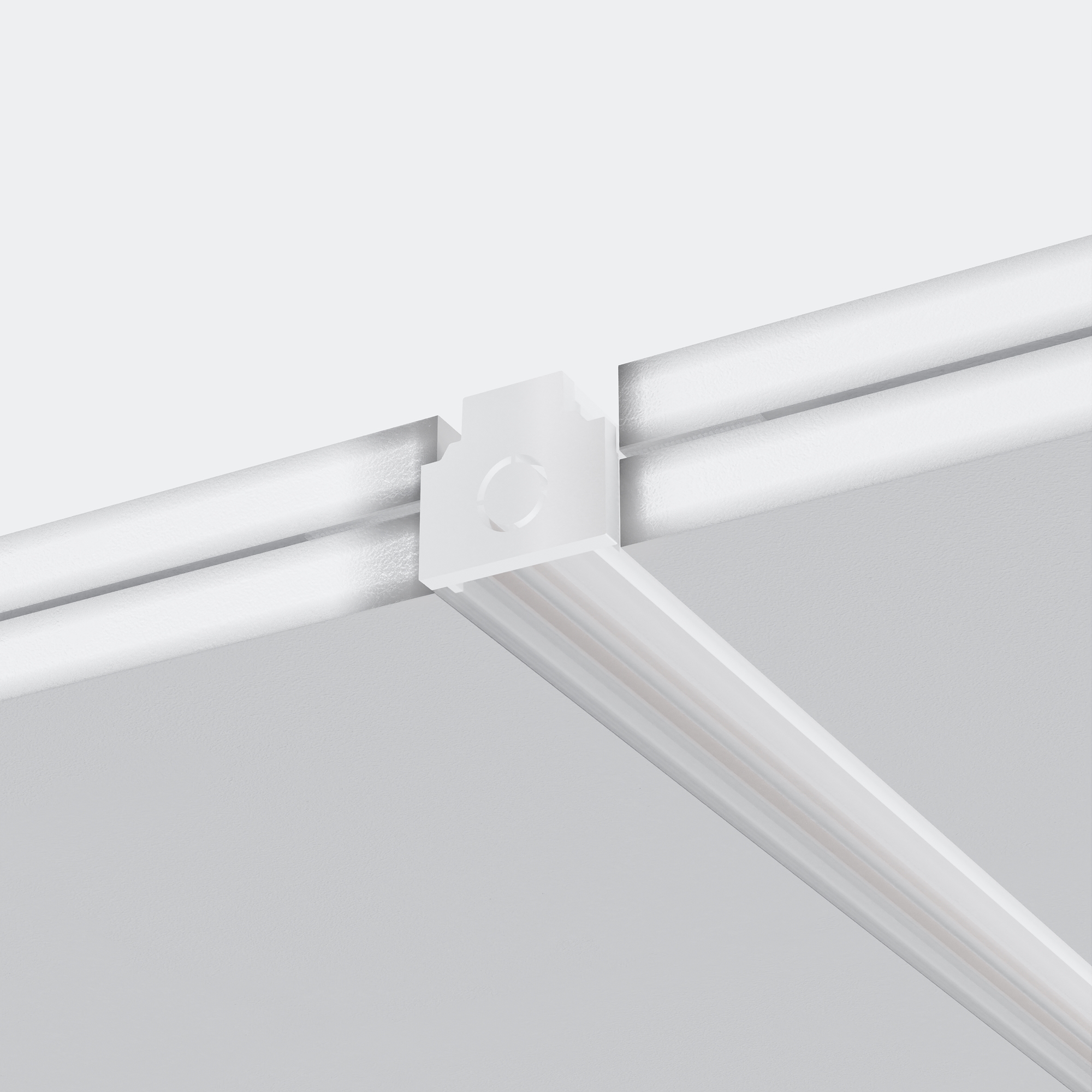 Комплектующие для низковольтной магнитной трековой системы Exility в черном и белом цветах. Разнообразие аксессуаров позволяет собрать свою уникальную конструкцию для накладного монтажа, подвесного, встраиваемого под гипсокартон и встраиваемого в натяжные потолки.